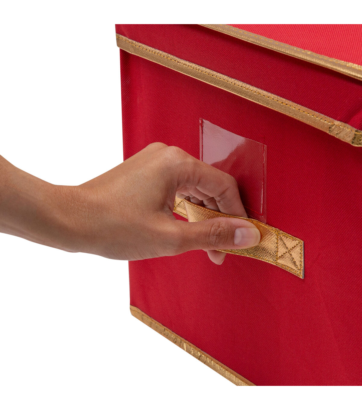Keep your holiday décor and accessories protected by storing them in the Simplify Holiday Storage Box. Designed with a hinged lid to protect your décor from dust and keep them safe and clean. A label window on the front to properly identify what is in the box without having to open. Storage box folds flat when not in use making it easy to store away. Keep organized during the holidays with the Simplify storage box!