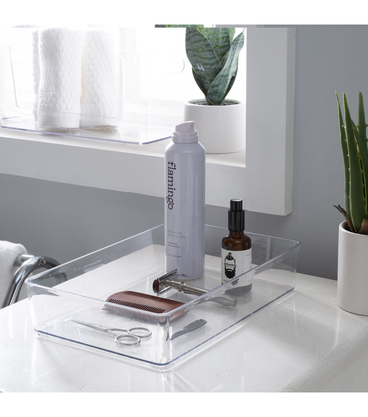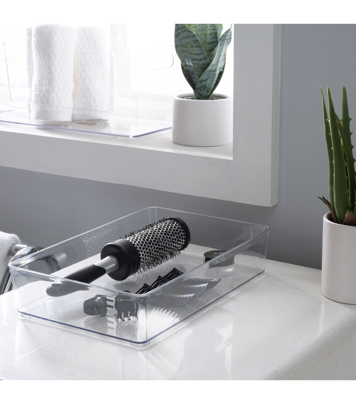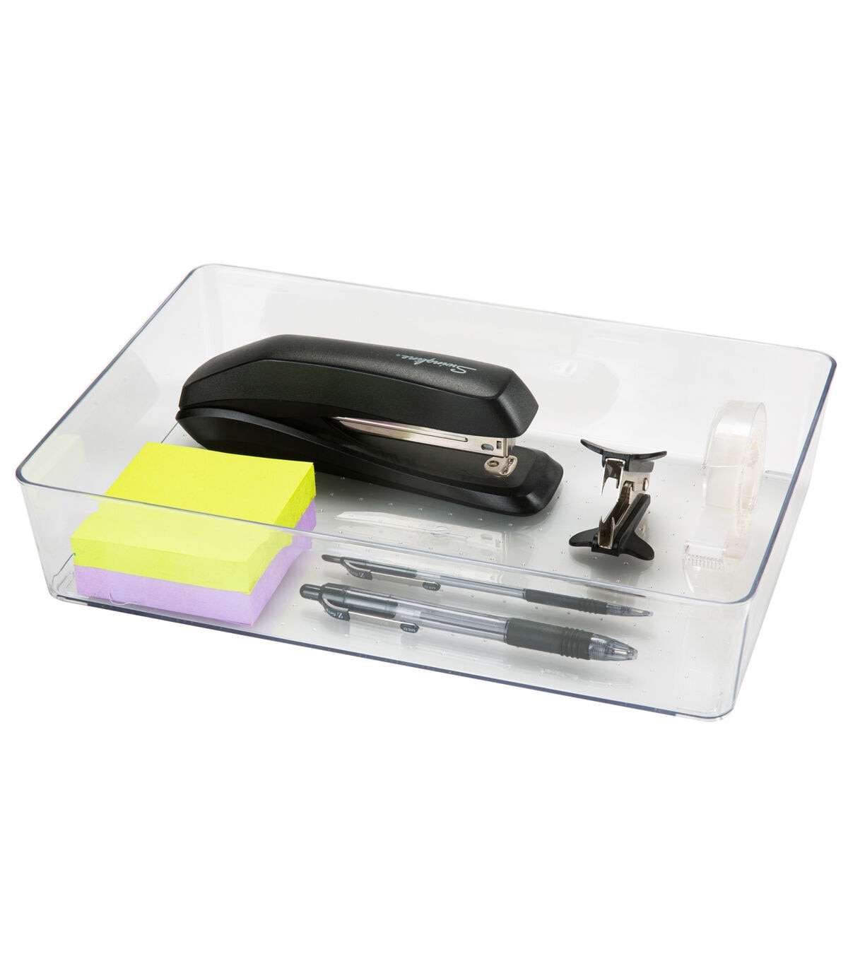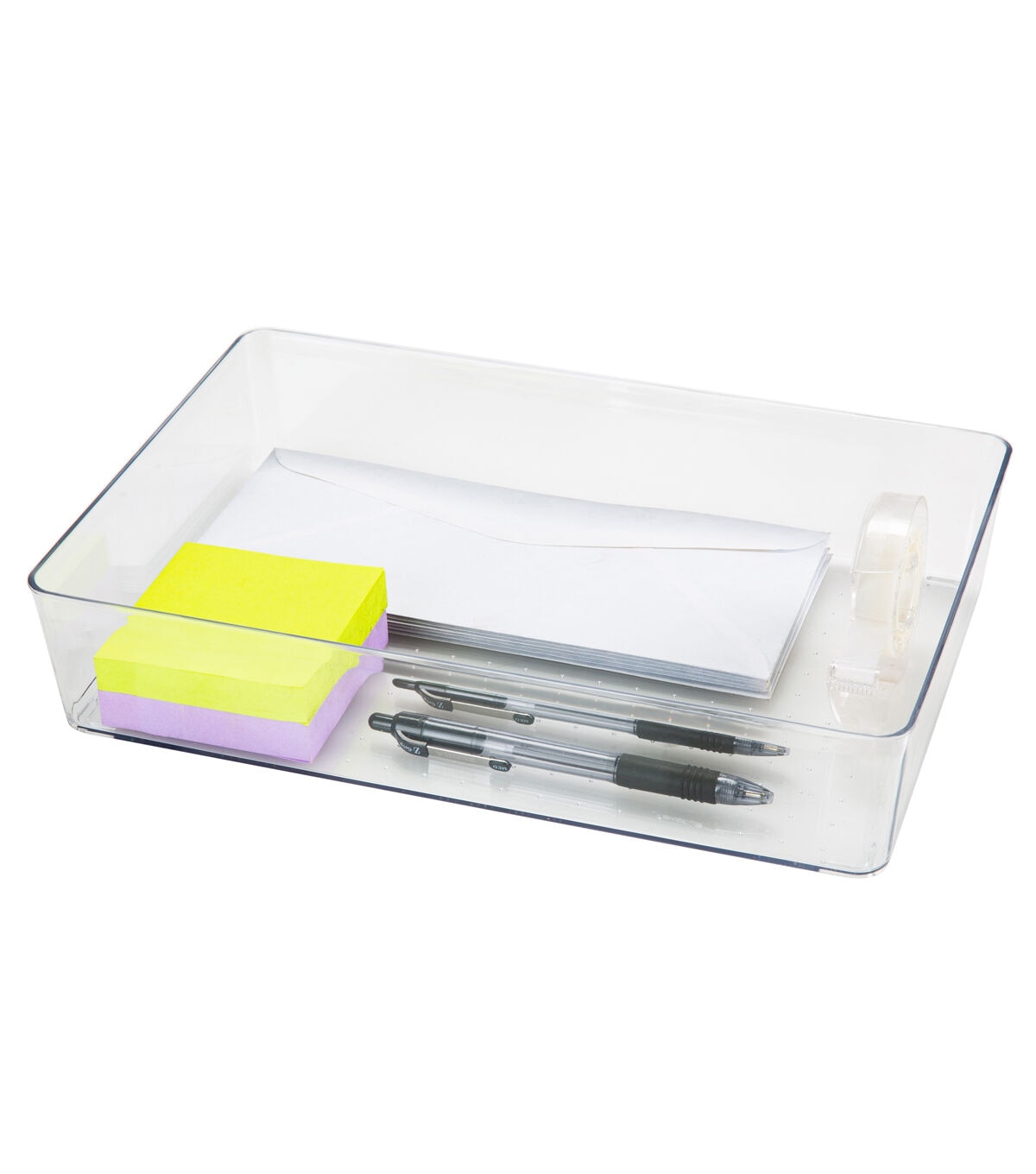 Organize your bathroom vanity or desk drawer with this Simplify Large Drawer Organizer. It is the perfect size for desk accessories such as pens, pencils, and note paper. It is also good for holding jewelry and cosmetics and brushes. The clear design makes items inside visible and easy to find. You can keep this transparent organizer bin on your desktop or countertop surface because it fits with any room’s décor. Organize the little things in life with the Simplify Drawer Organizer.