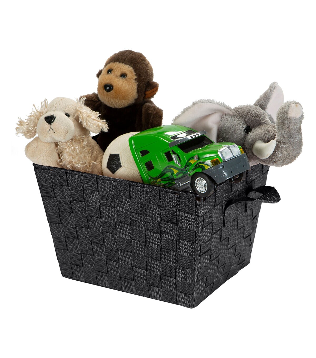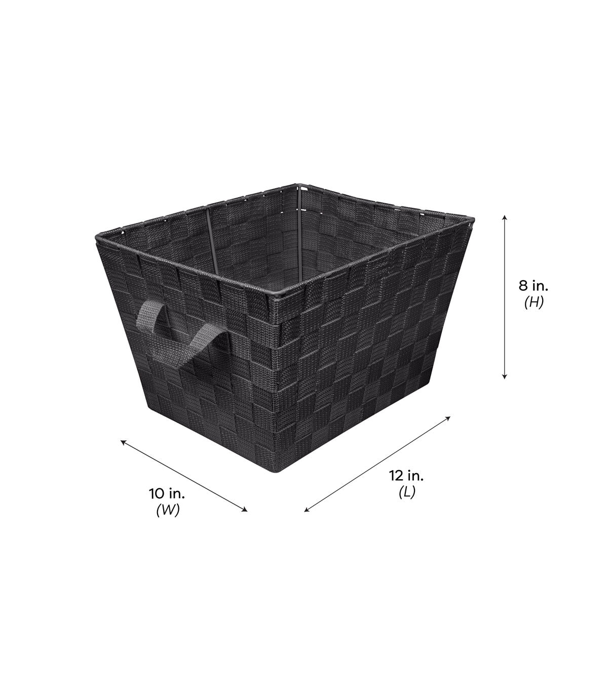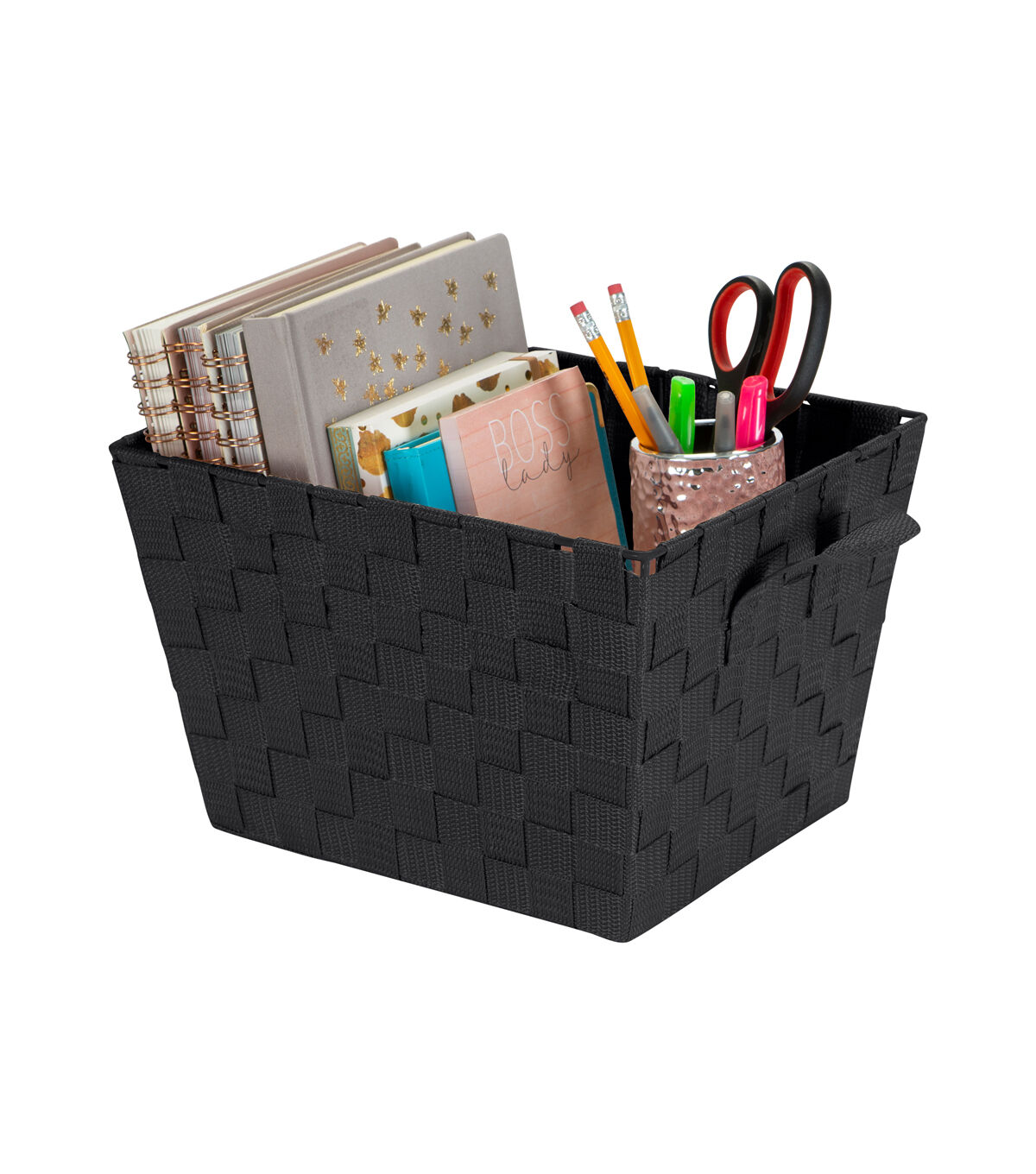"This Simplify Woven Storage Bin is made of sturdy polypropylene with epoxy wire frame dual handles for easy carrying. Acts as a great storage accessory for all your home needs. Maintenance free."