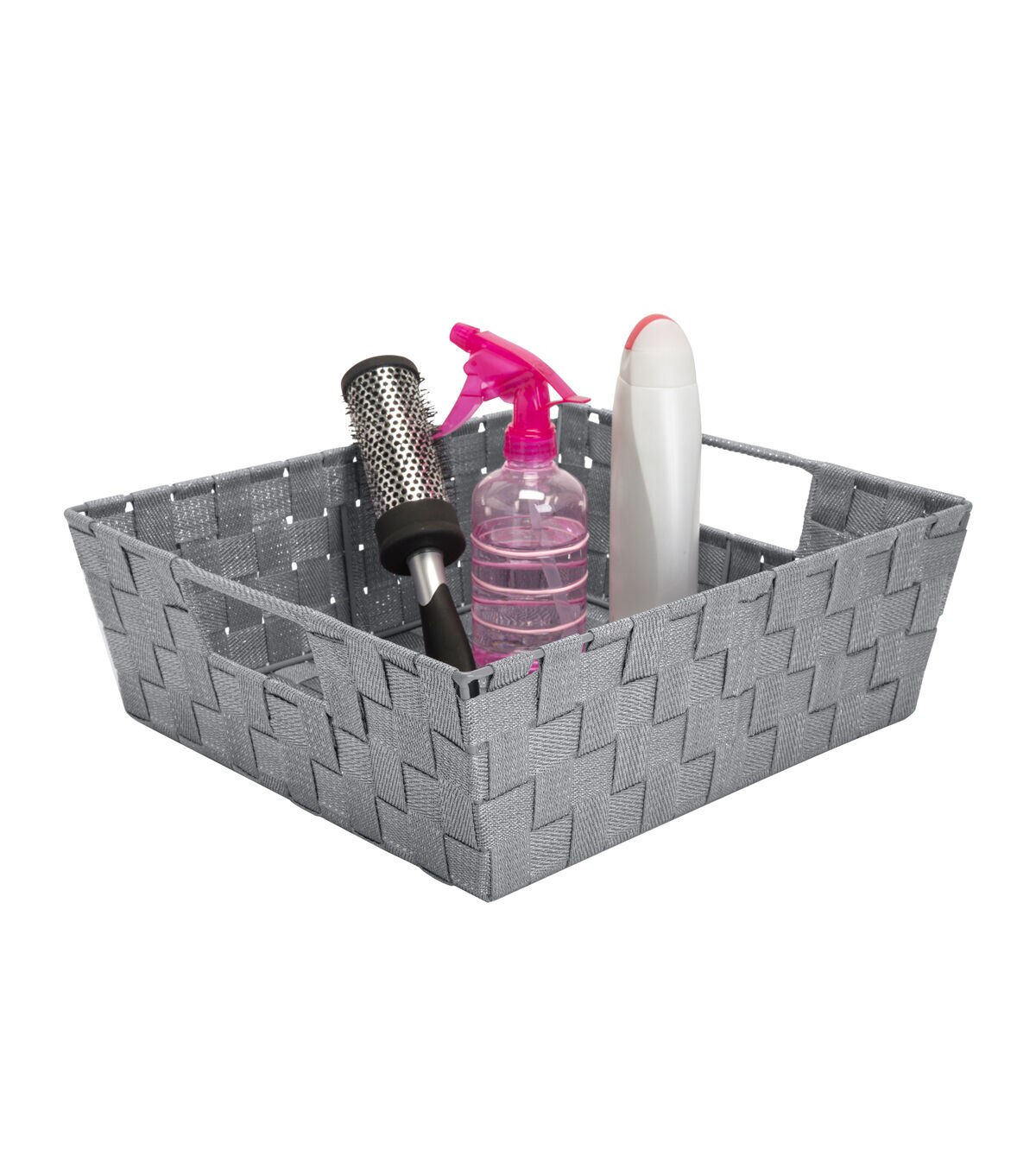 This Simplify Lurex Woven Strap Bin is made of sturdy polypropylene with epoxy wire frame and dual handles for easy carrying. Acts as a great storage accessory for all your home needs. Maintenance free. Durable and lightweight in design.