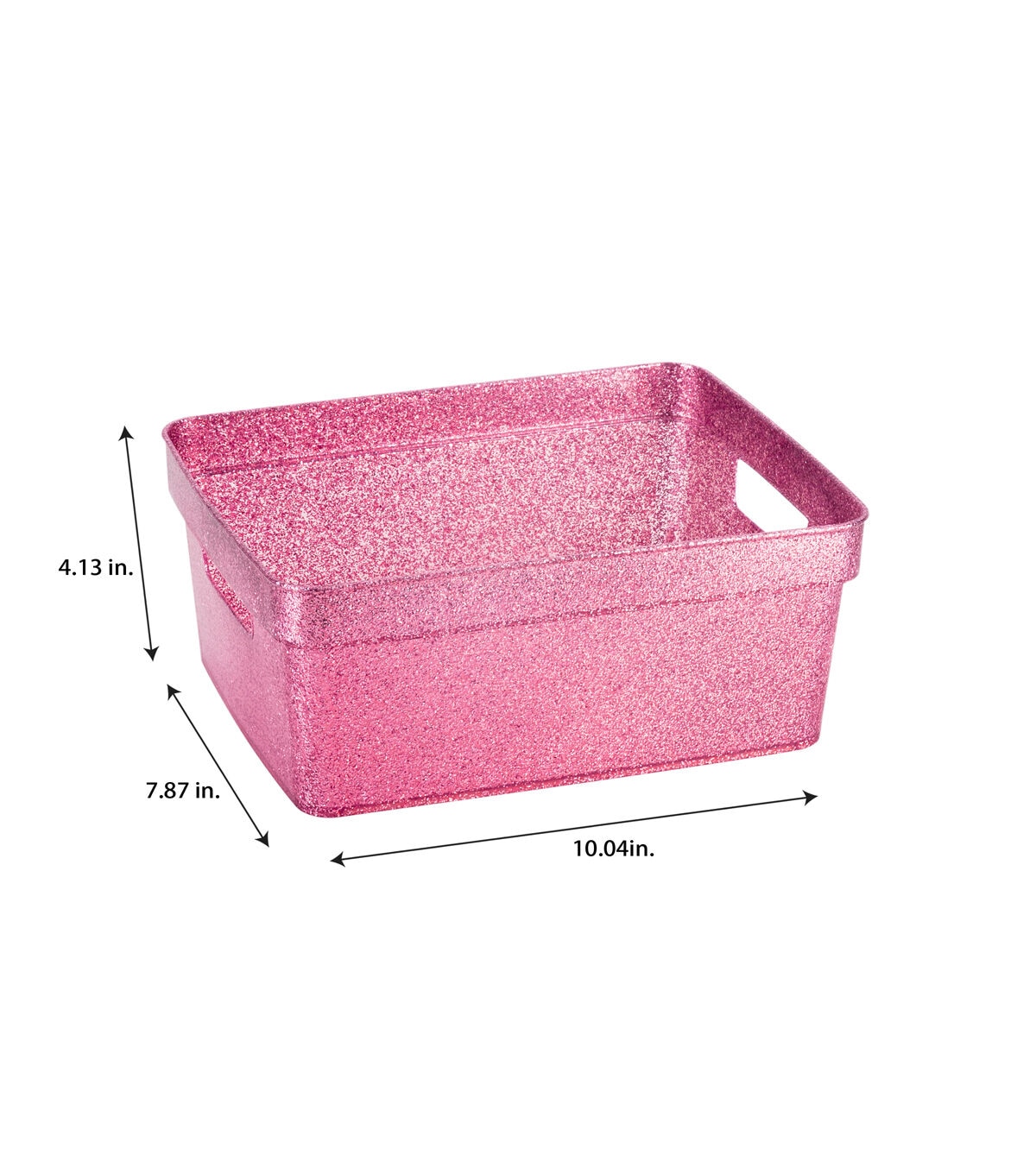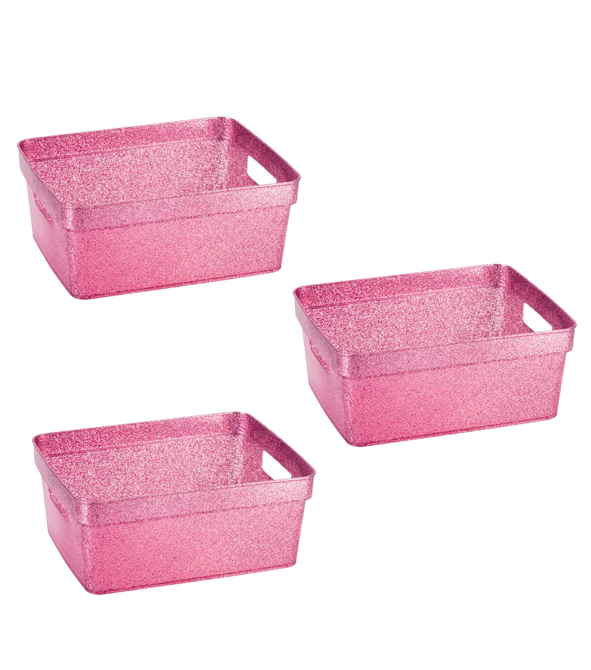 Organize and create storage in your home with the Simplify 3 Pack Small Glitter Totes. They are strong and durable, and the lightweight design makes it easy to lift and carry. The size makes these a great addition to a countertop, shelf, closet or in a deep draw. They are perfect for storing toys, office supplies, cleaning supplies, accessories and so much more! Your space with look neat and organized with the set of matching totes.