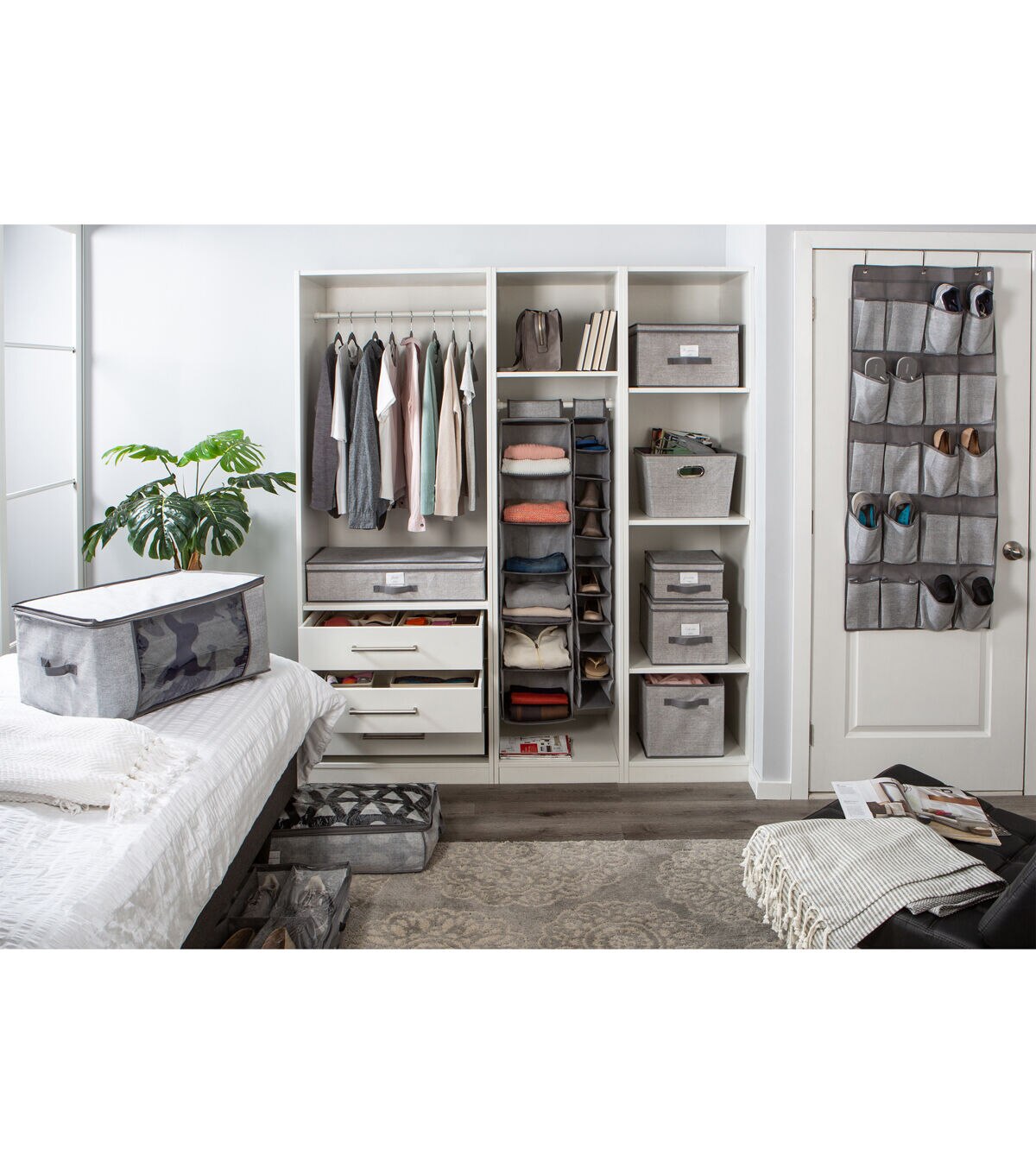 These Simplify storage totes keep your favorite loose items safely in place. Also, it gives your room a chic look while adding storage space to it. Great for shelving and flat surfaces. Built in handles for easy access, and helps you have your room neatly organized.
