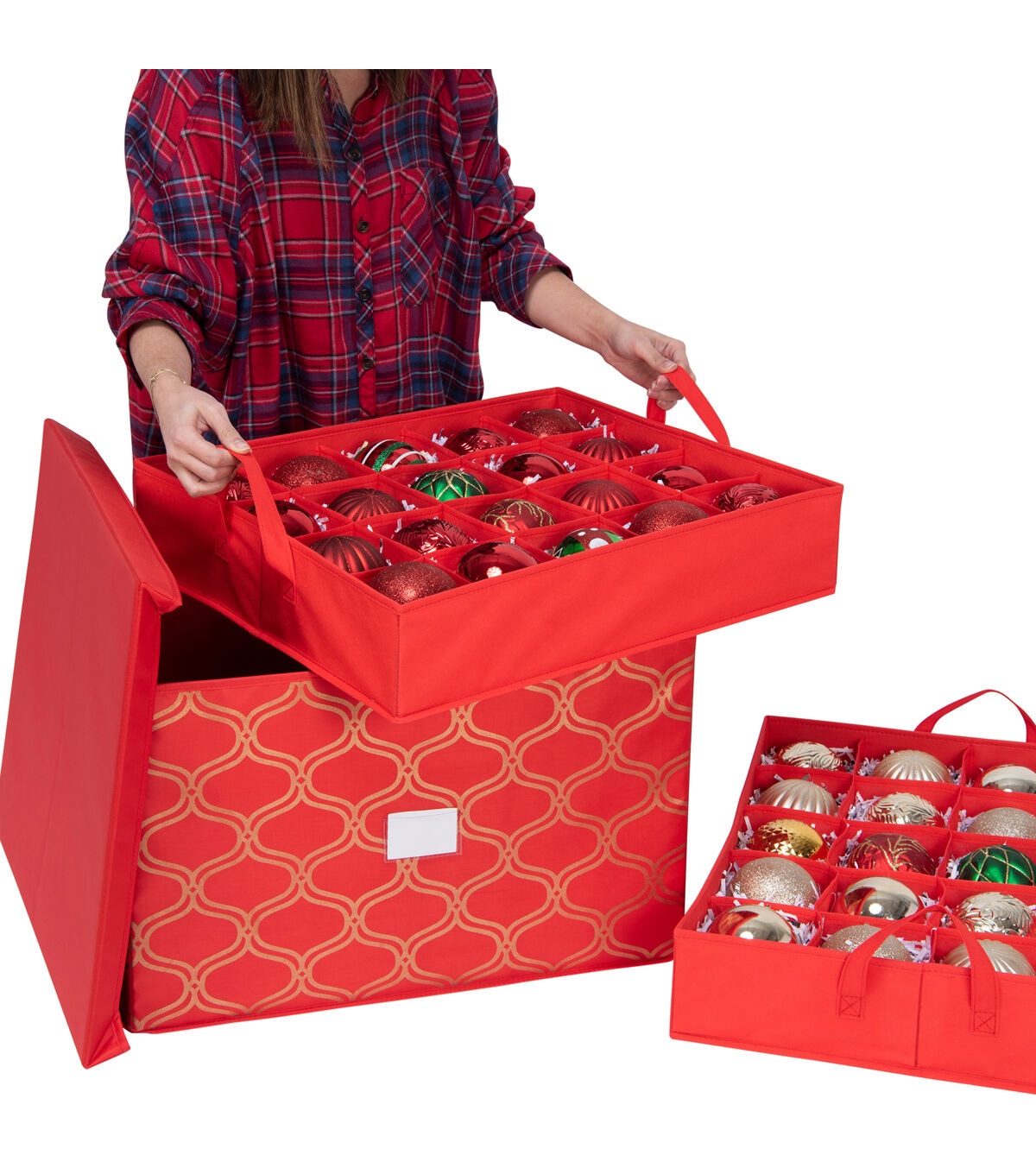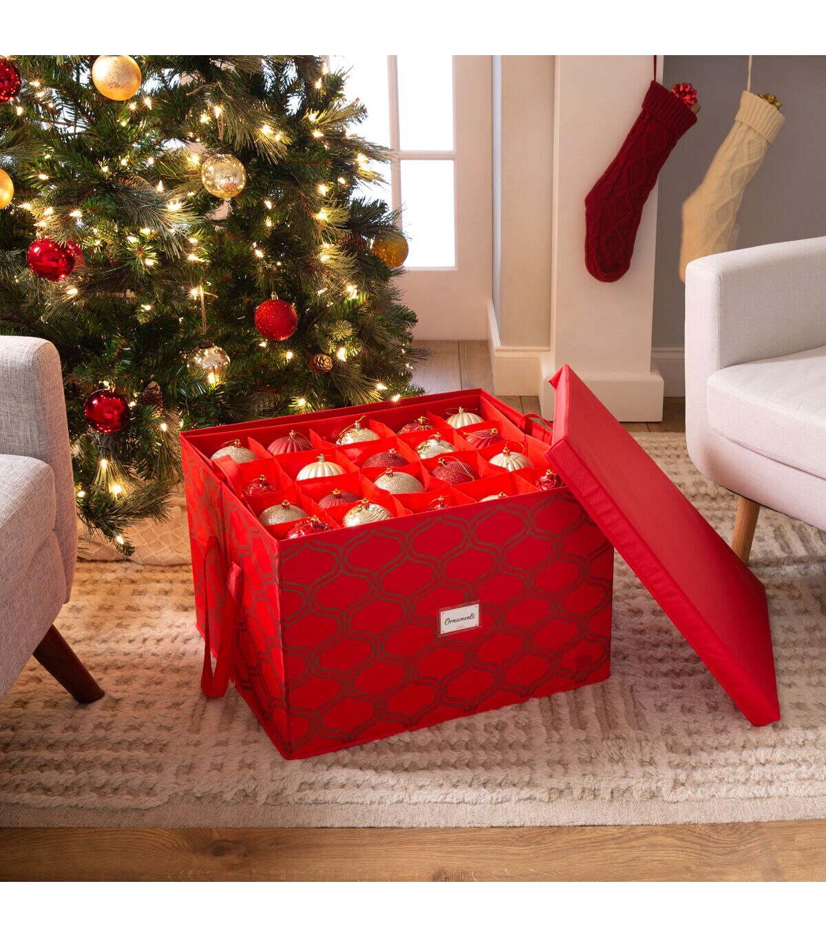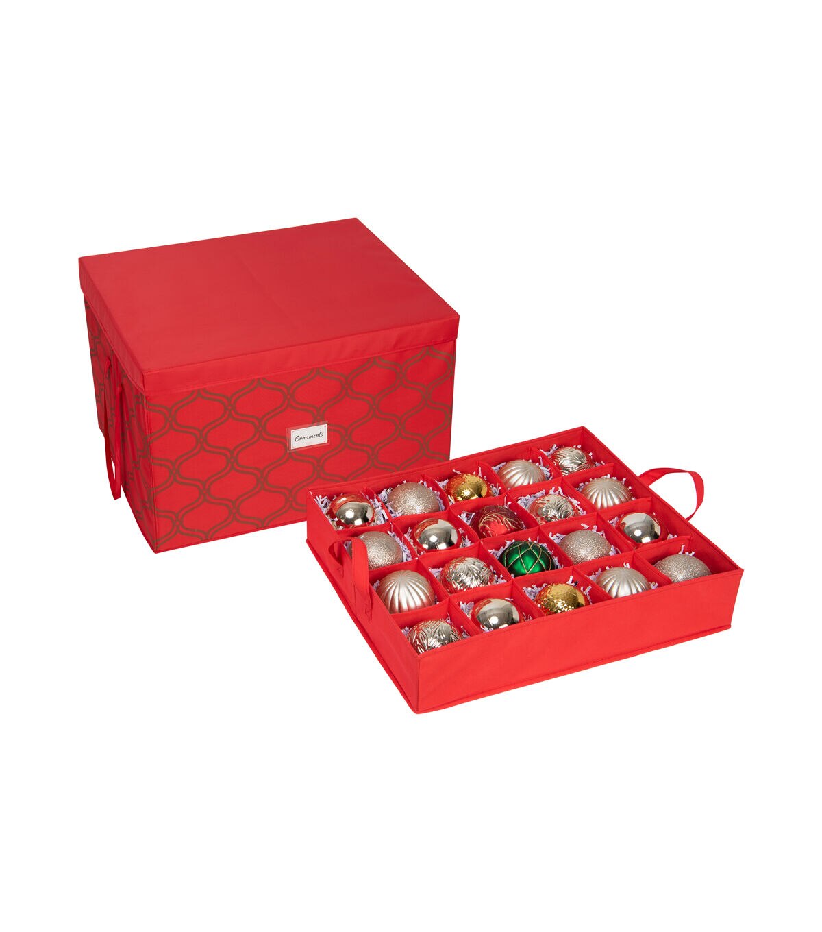 Keep your precious holiday décor safe on the off season with the Simplify Holiday festive storage tote bins! Holds 60 ornaments at a time, up to 2.25 inches big. The plastic material allows the storage bin to protect what's inside from being crushed, dust, odors and water. Stackable design allows you to maximize your storage space, removable lid makes it easy to pack and unpack your items. The festive holiday print allows you to use for more than just a storage box, can be used as a big gift box or a holiday basket!