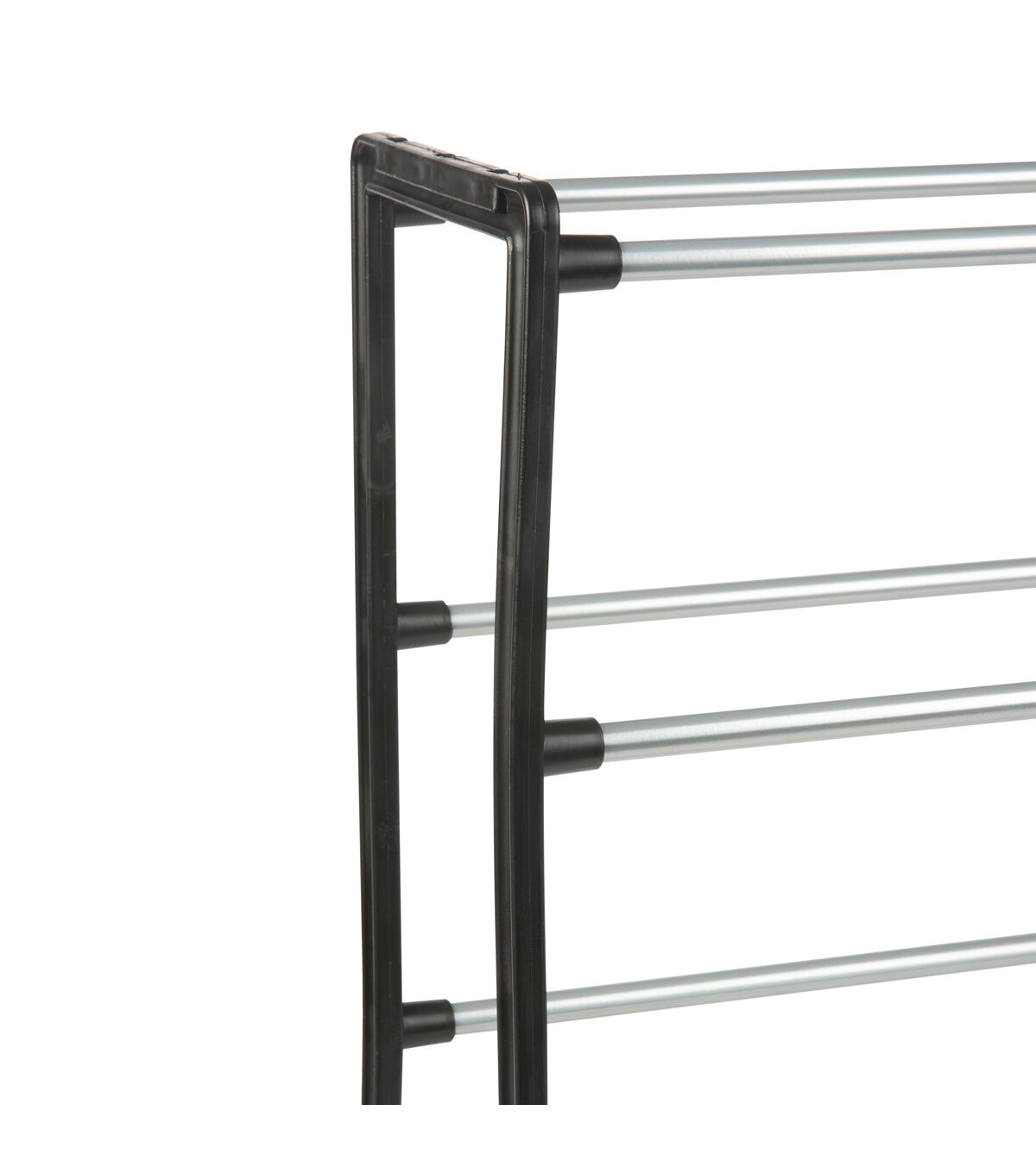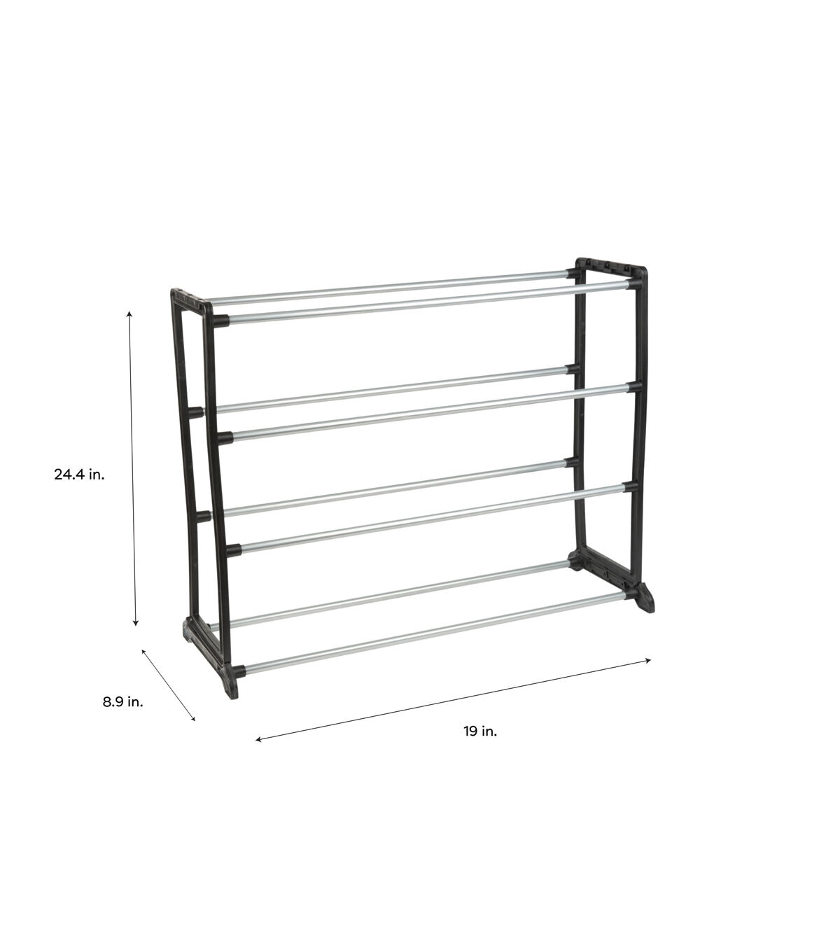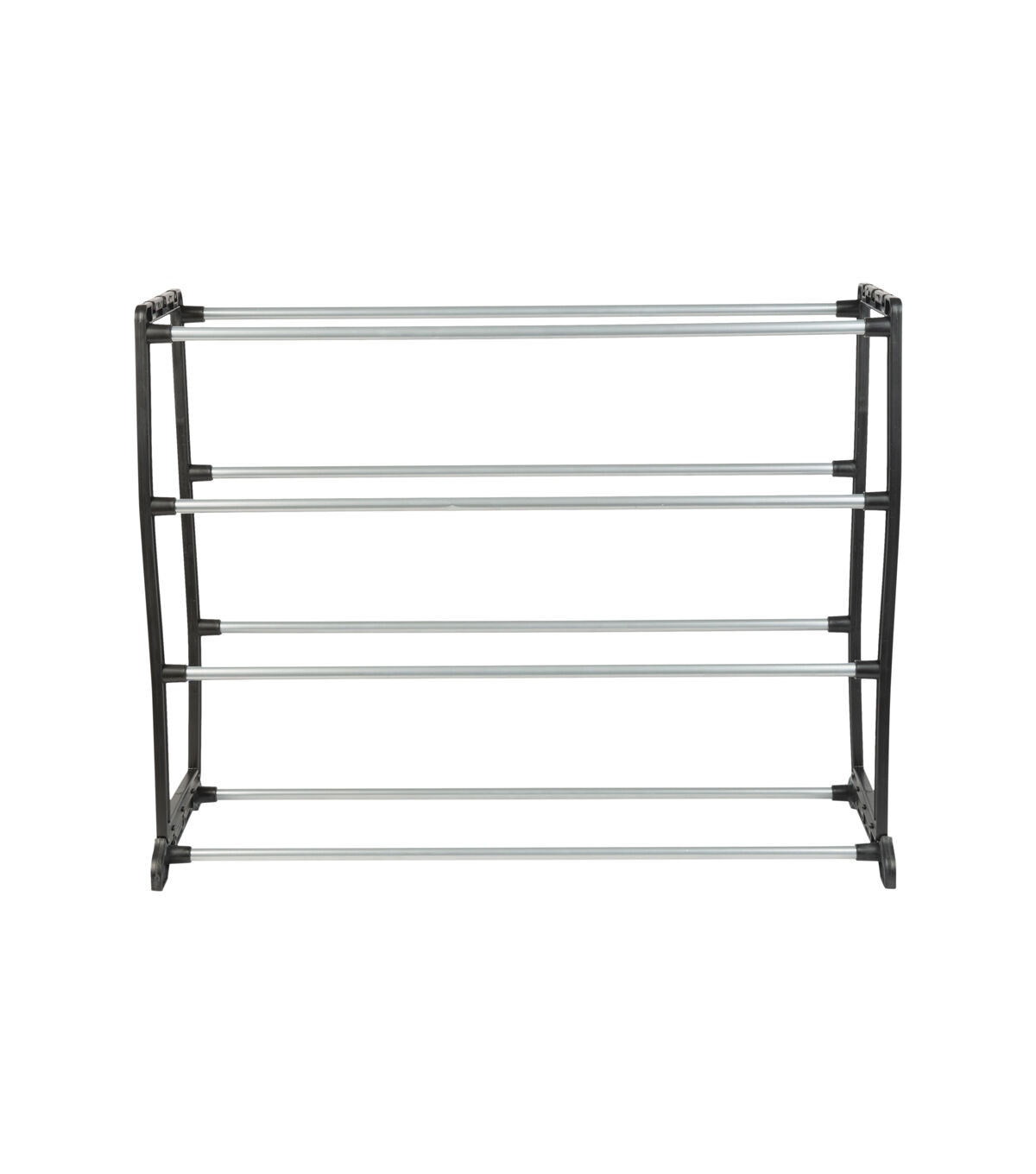 Tidy up your space with the Simplify stackable shoe shelf. This four tier shoe rack holds up to 12 pairs of shoes. Stackable notched frame allows you to add additional tiers of shelving and fit individual needs. The attractive shoe organizer fits any décor and will transform any space, closet or entryway.