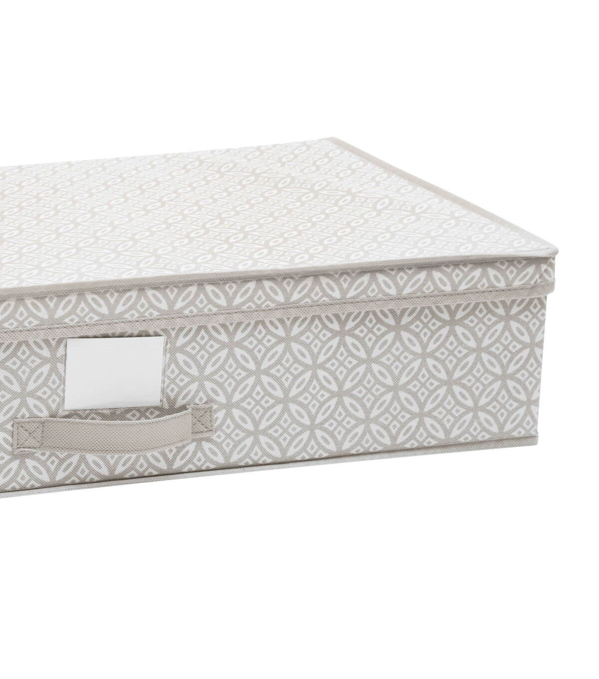 This Simplify Boho Under-the-Bed Storage Box is made of breathable non-woven material that keeps your belongings safe. Perfect storage solution for off-season items such as bedding or folded garments, also protects your garments from dust and damage. It features helpful handle and a flip top cover for easy access. This under the bed storage has reinforced sides for stack ability that lets you have extra storage in your room.