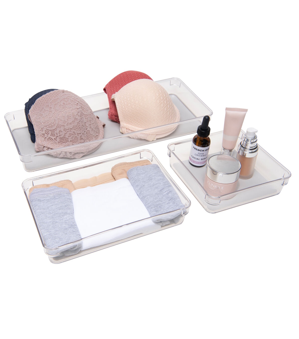 - 3 Pack multipurpose drawer organizers