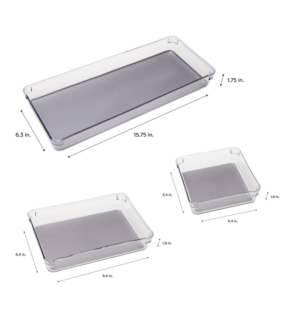 Organize any place in your home with the Simplify 3 Pack multipurpose drawer organizer Set. The pack includes 3 different sizes, small, medium and large for your different needs. Can be placed in a drawer, on a dresser, cabinet, vanity office and more. Keeps items in place with the non slip lining and prevents messes around your home. Can use just about anywhere in your home including the bathroom, kitchen and office!