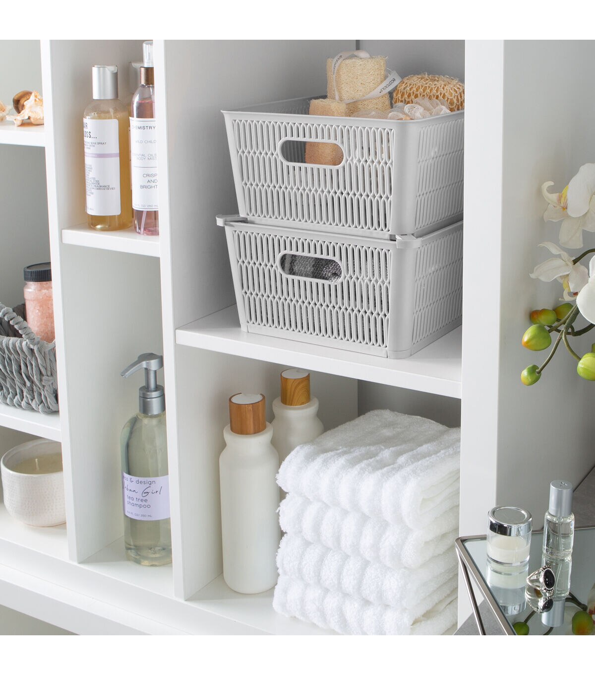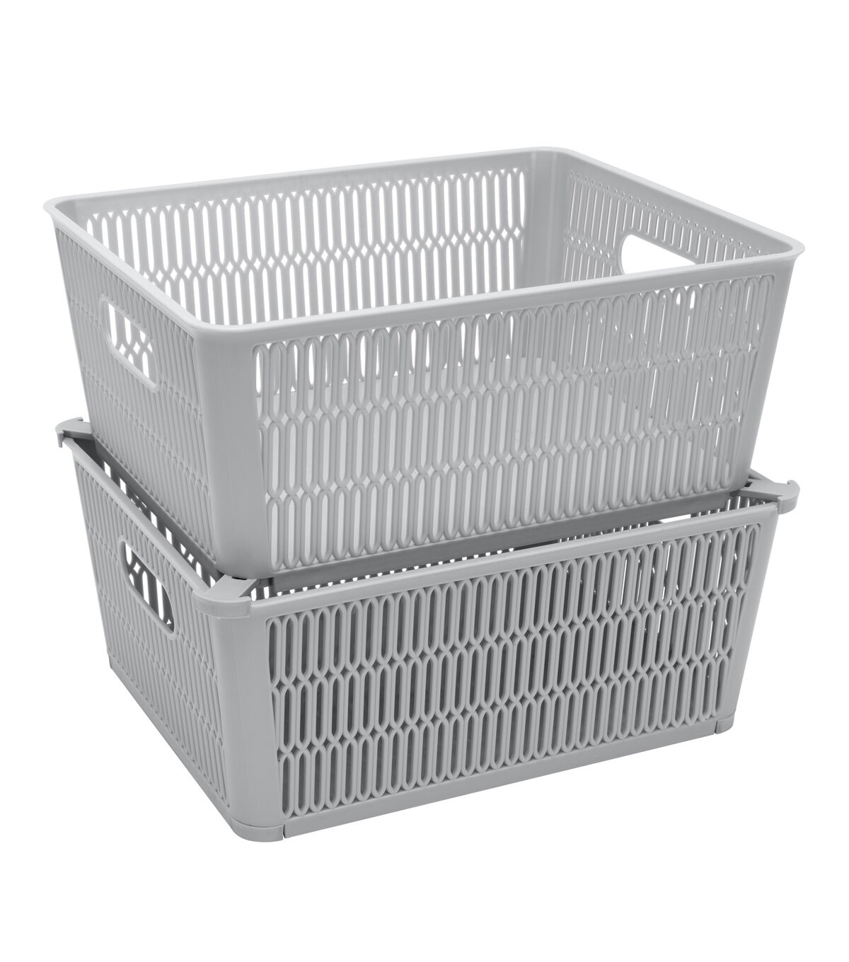 Maximize your storage space with the Simplify Slide 2 Stack It Storage Tote Baskets. Created with a patented slide to stack design which provides slide out corner support that allow the totes to be safely stackable. Storage totes hold up to 40lbs while stacked, allowing you to maximize your storage in closets, cabinets, shelves and more. The totes neatly nest inside when not in use. Organizing just became easier with the Simplify slide 2 stack it totes!