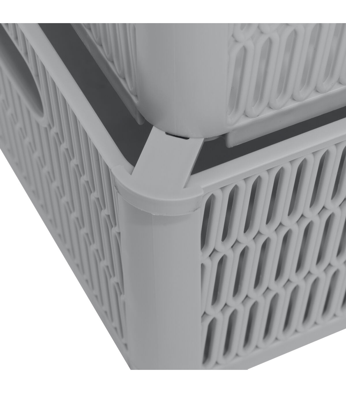 - Corners of each storage tote designed with slide out support to allow totes to be stackable