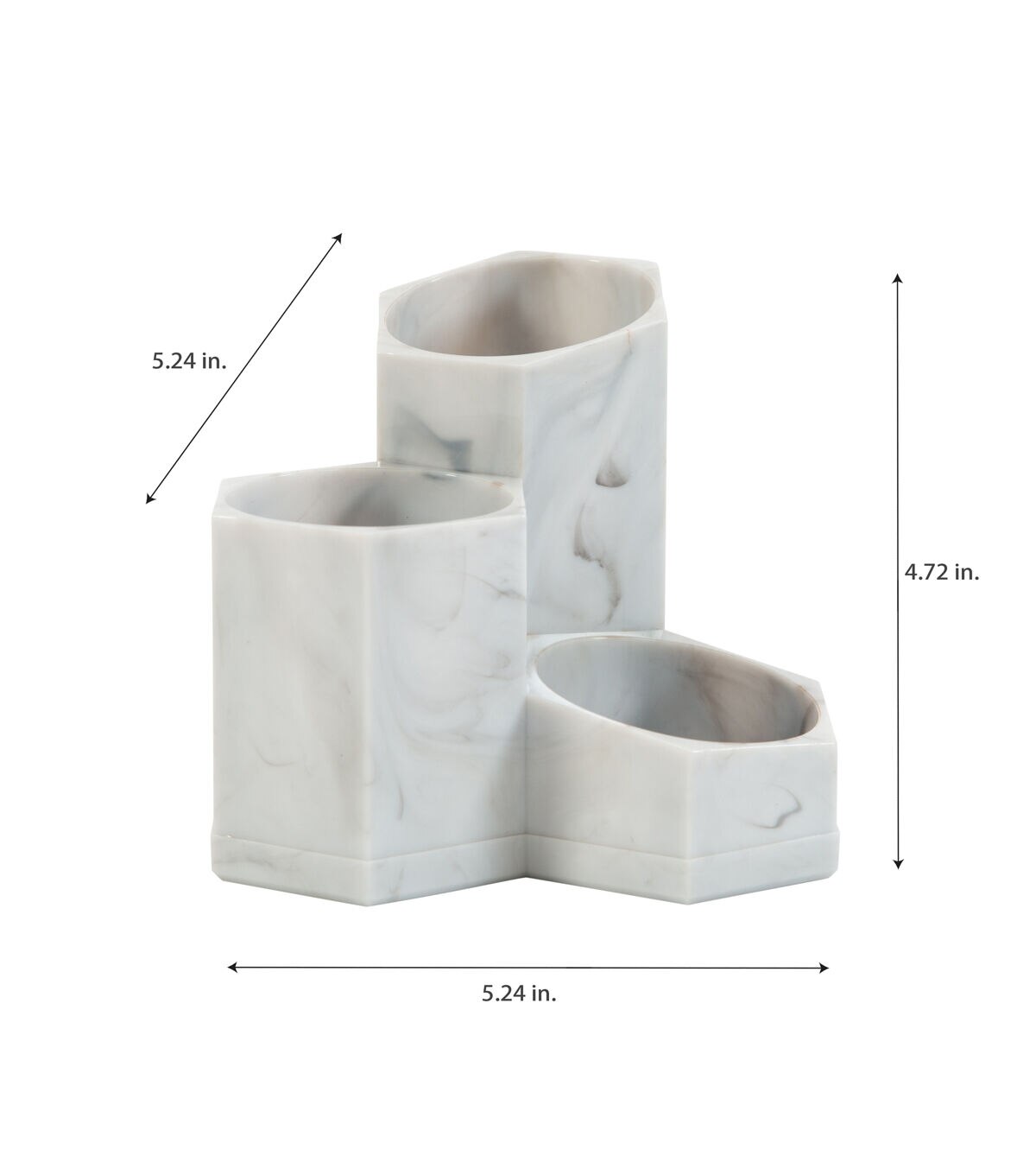 This Simplify 3 Compartment Cosmetic Organizer helps organize your beauty products and all of your cosmetics. Keeps all essentials in view and accessible on your countertop surface. It displays beautifully anywhere and keeps things at your fingertips. The 3 multi-sized compartments can hold brushed, eyeliners, Q-tips, and more. It can also be used in the office to hold pens and pencils. Be organized and stylish by adding this brush holder to your decor!
