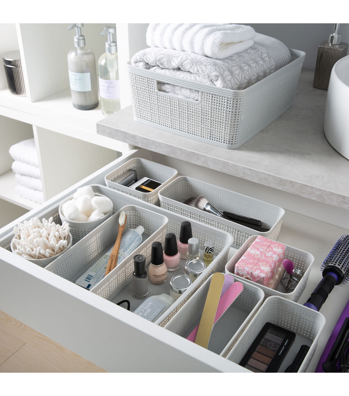 - Multiple Sizes of Baskets Accommodate a Variety of Items