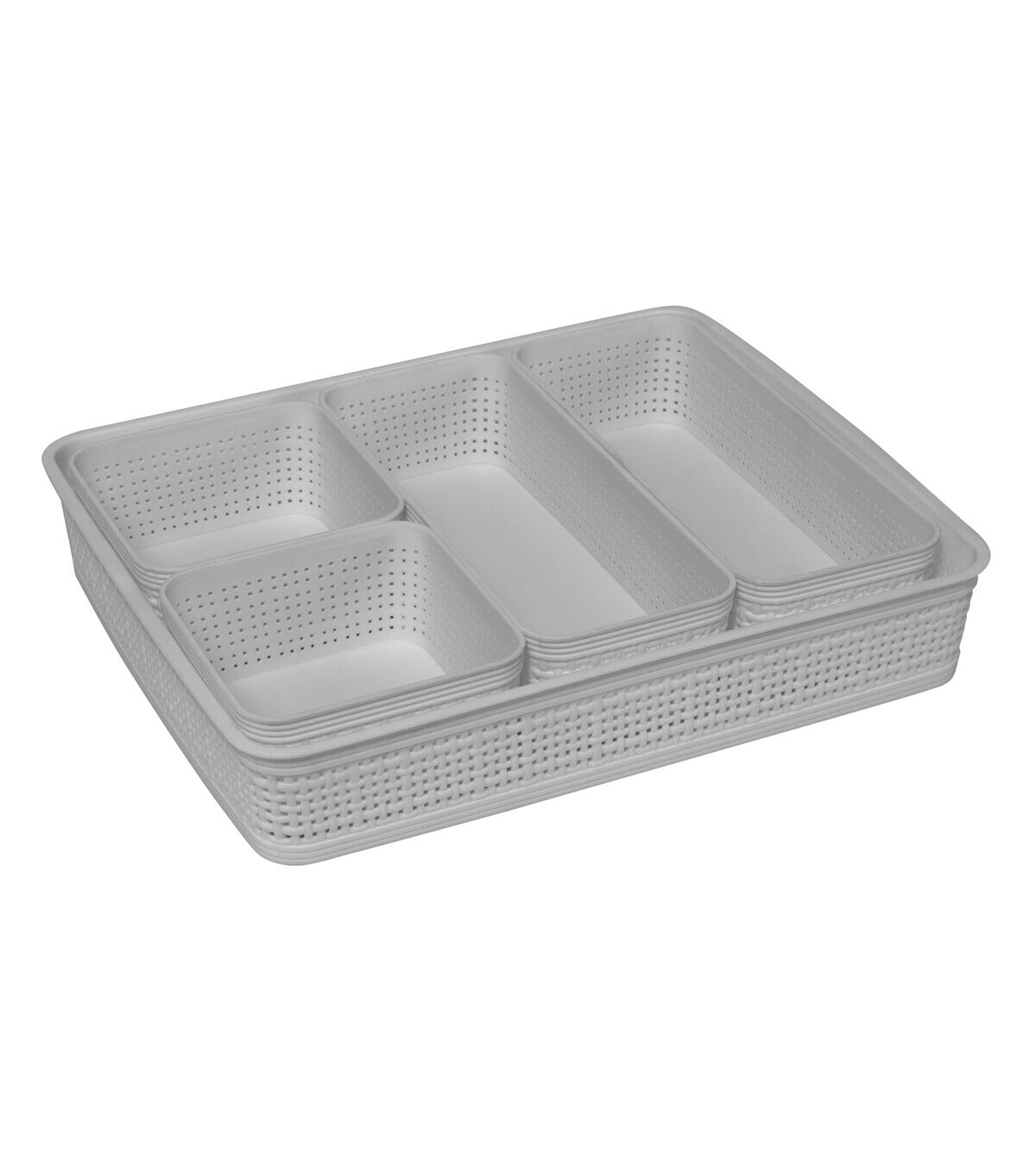 One pack for all of your organizing needs, the Simplify 5 pack Organizing Set! In one set there is all different shapes and sizes perfect for storing your small items up to your bigger items. The perfect starter pack to start decluttering and organizing your home, office or dorm!