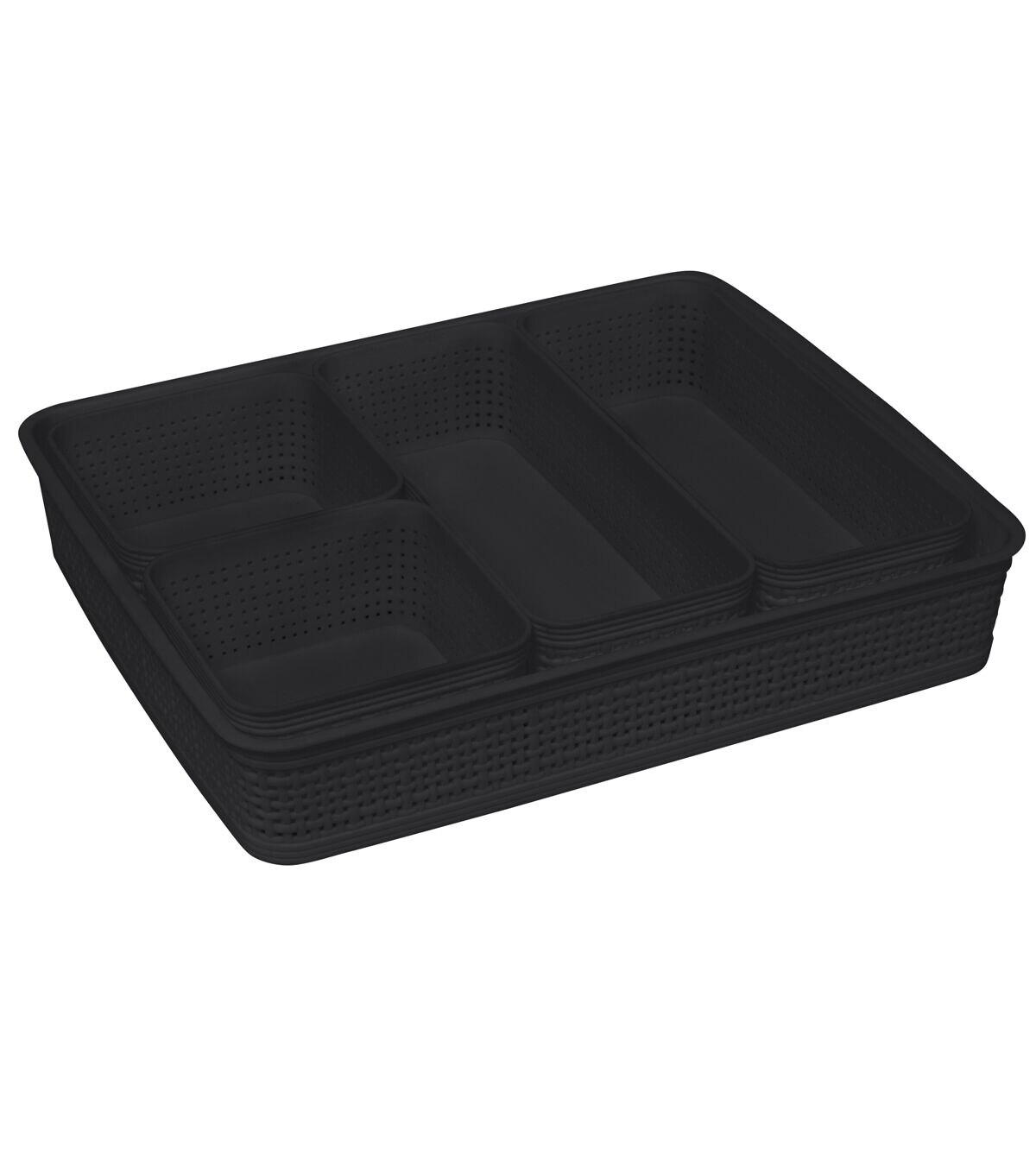 - Set Includes: 1 Large Rectangle-13.75"x 11"x 2.5", 2 Rectangle Baskets-10"x 5"x 2.5", 2 Square Baskets- 5"x 5"x 2.5"
