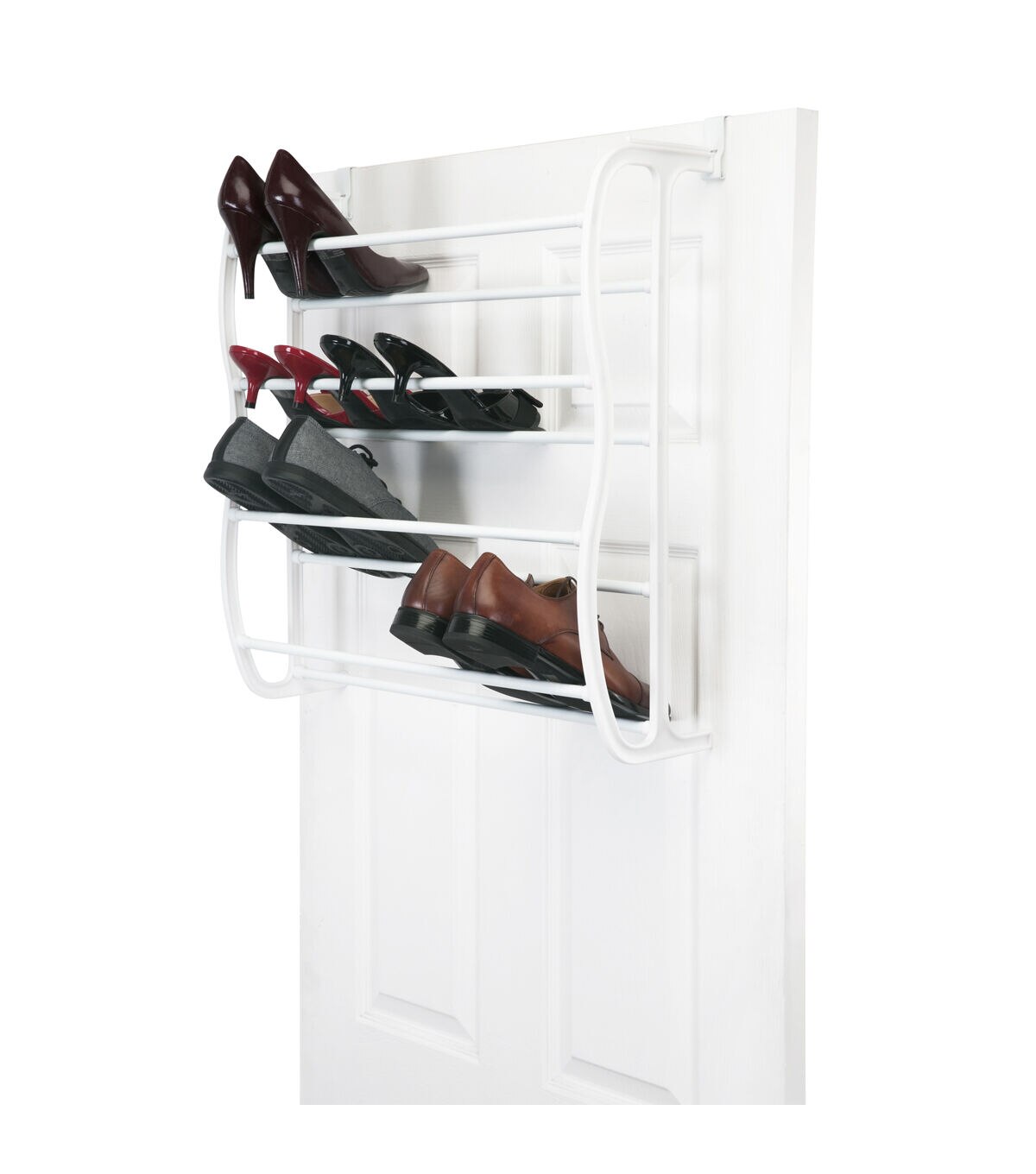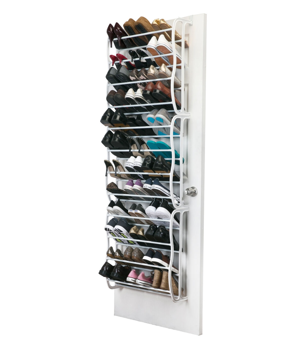 The Simplify 36 Pair Adjustable Over the Door Shoe Rack grows with your shoe collection. The adjustable shoe rack can grow from one, two or three tiers depending on how many shoes it's needed for. Each tier holds up to 12 pairs of shoes holding a total of 36 pairs of shoes. Without any tools the shoe rack mounts easily over most doors. Maximize your space in any room in the house!