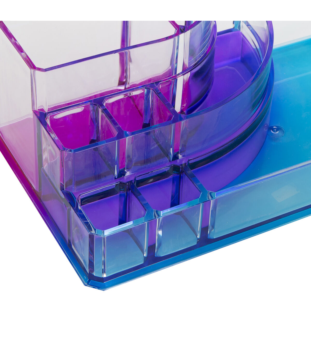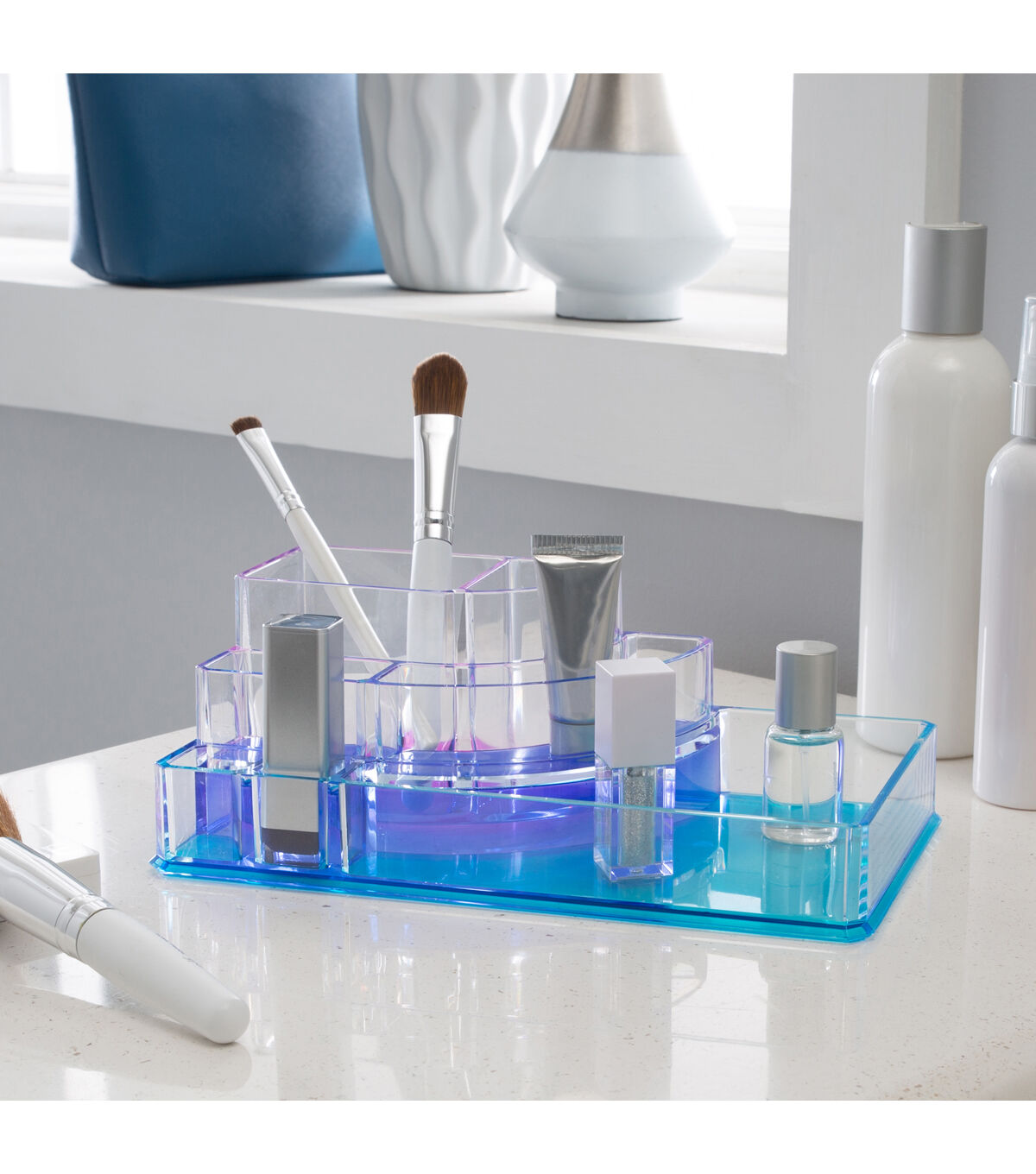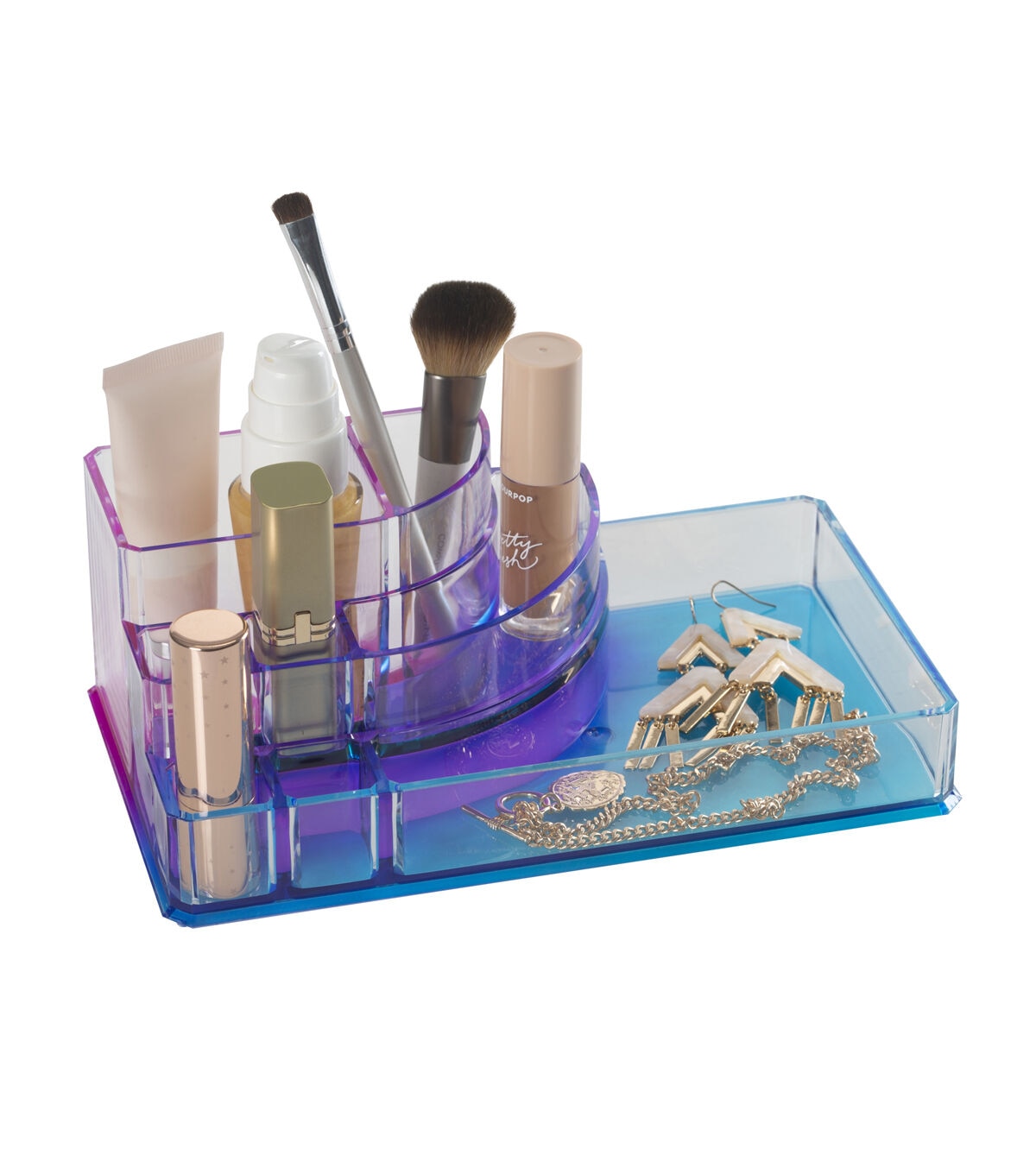 Keep all of your finishing touches in one place with this Simplify 8 Section Cosmetic and Jewelry Holder. This accessory is ideal for keeping your bathroom, vanity, or dresser workspaces tidy. It will help keep all your favorite cosmetics organized so you can find them easily. You can keep makeup, rings, or earrings easily within reach and organized. The holder is made of durable and lightweight material with a fun design.