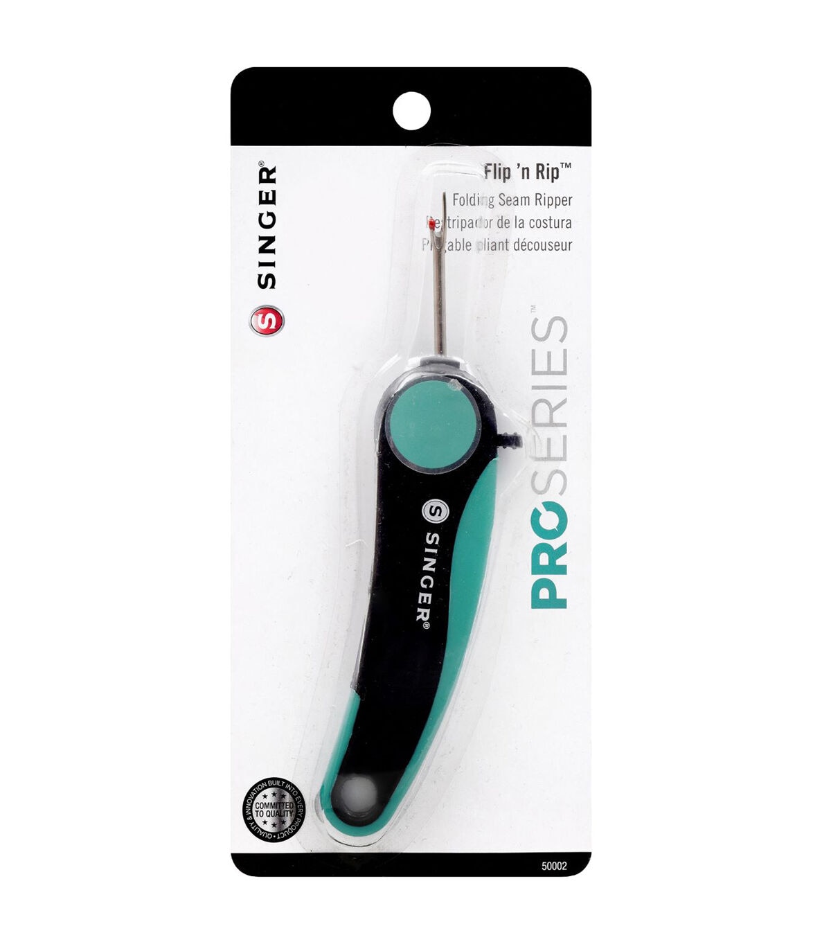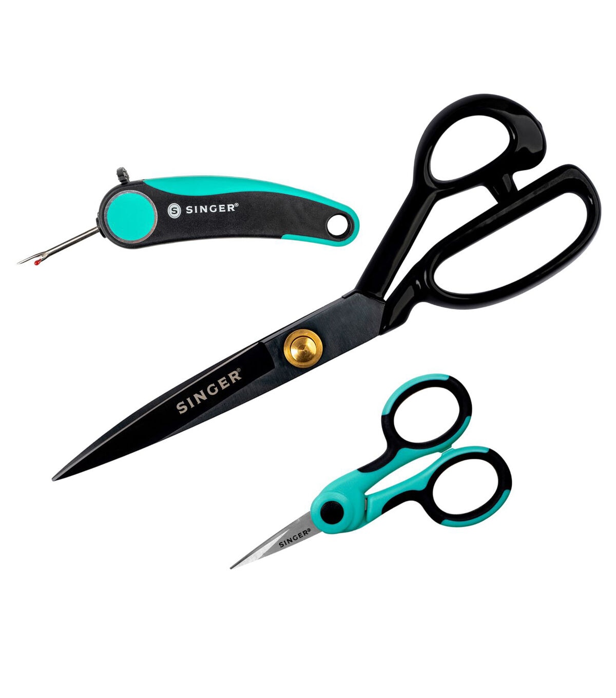 The ProSeries 10” Tailor Scissors are heavy-duty shears with black oxidized blades and rubberized handles that ensure a comfortable grip. The forged steel blades are tempered for long-lasting sharpness – so sharp that it can easily cut through multiple layers of fabric at once. Ground on both sides to prevent rusting, these blades will cut smoothly with a variety of fabrics. Designed with a solid handle for a secure grip and a folding safety mechanism to hide the sharp point when not in use, the ProSeries Folding Seam Ripper is perfect for picking threads, opening seams and stitched buttonholes, and removing buttons, snaps, and stitching without damaging fabrics. The ProSeries 4.5” Nano Tip Scissors are precision shears with a teal and black comfort grip handle. With blades that are individually inspected and hand tested to ensure excellence, these detail scissors come with a lifetime guarantee and are perfect for precision cutting and detail work. This bundle provides a set of high-quality cutting tools that make a great addition to any sewing kit.