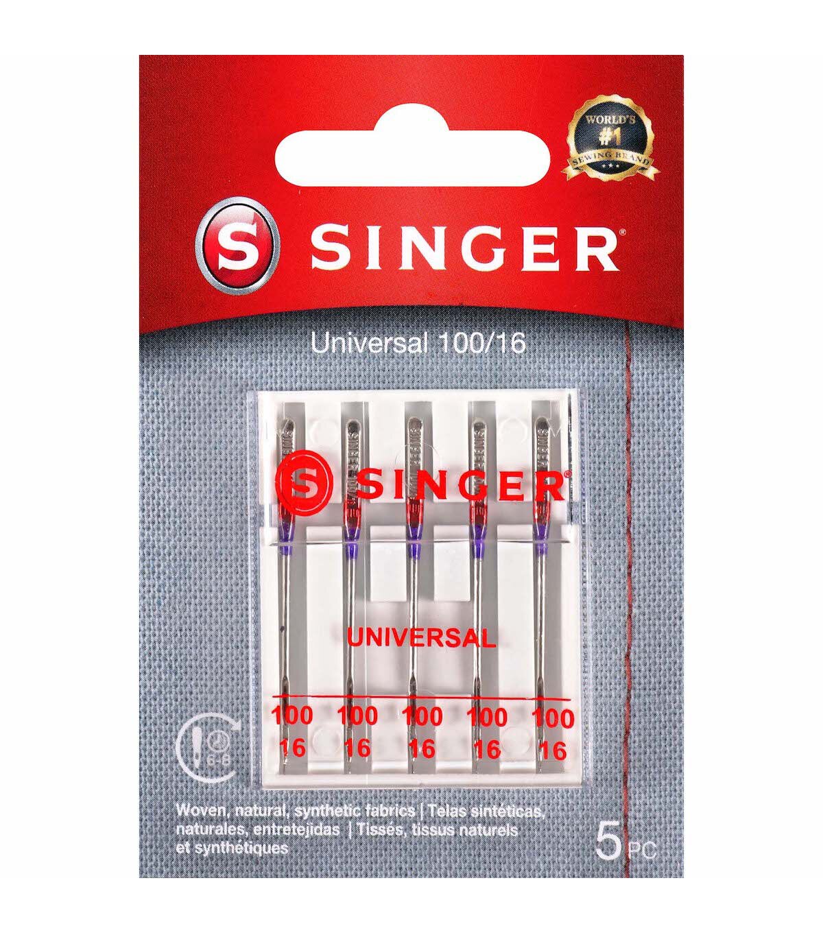 Use SINGER regular point, all-purpose machine needles, size 100/16, for basic stitching jobs on heavyweight woven fabrics such as denim, drapery, wool and corduroy. The color-coded machine needles are compatible with most quality sewing machines, including SINGER, Brother and Kenmore.