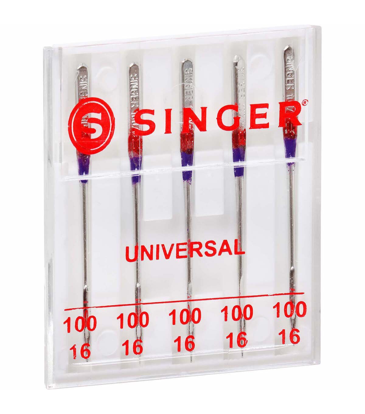 - Set of 5 universal regular point machine needles, size 100/16 All-purpose needles designed for basic stitching and best used on heavyweight woven fabrics