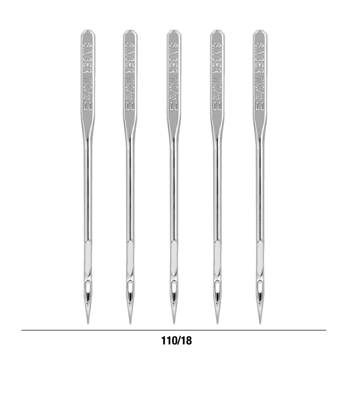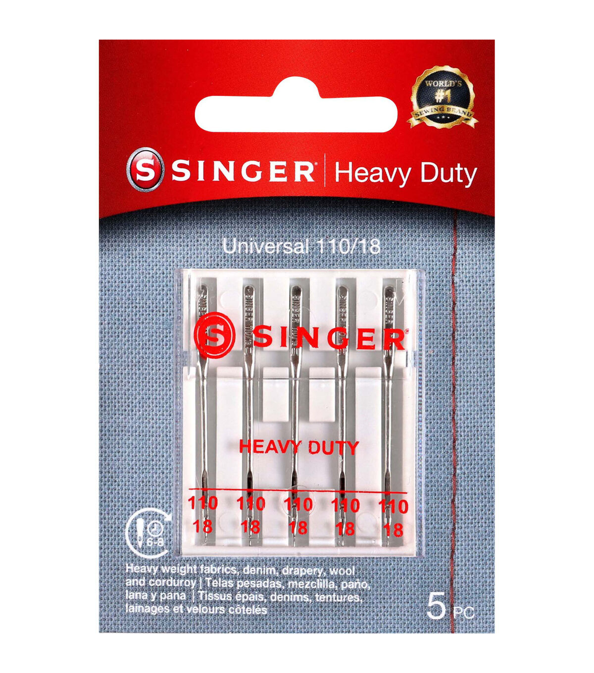 - Set of 5 heavy duty sewing machine needles, size 110/18 Heavy-duty needles in size 110/18 are necessary for heavyweight fabrics such as denim, upholstery, wool, corduroy or leather