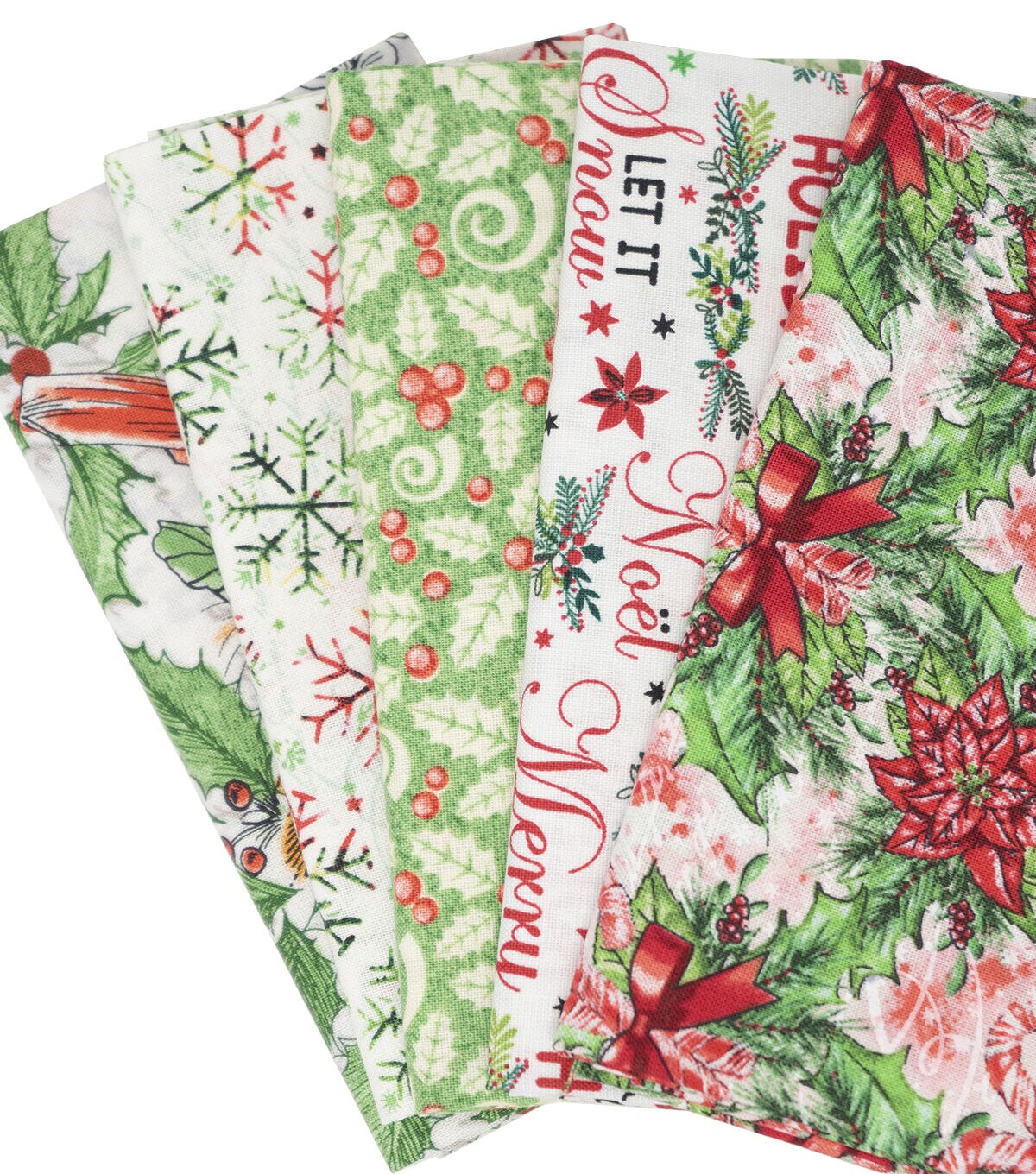 Singer 18" x 21" Cardinals & Holly Christmas Cotton Fabric Quarters 5ct