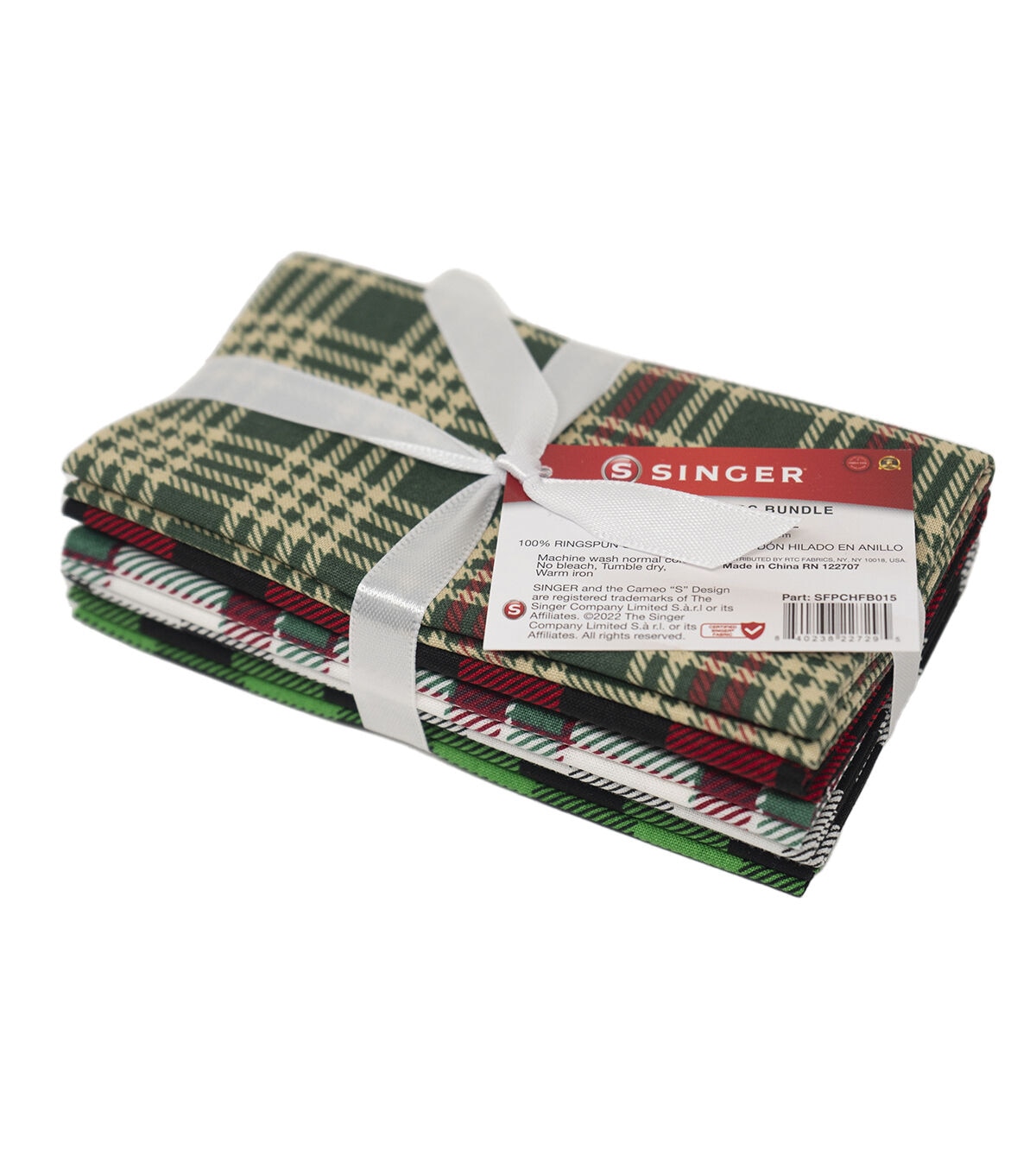 • Singer 18" x 21" Plaid Christmas Cotton Fabric Quarters 5ct