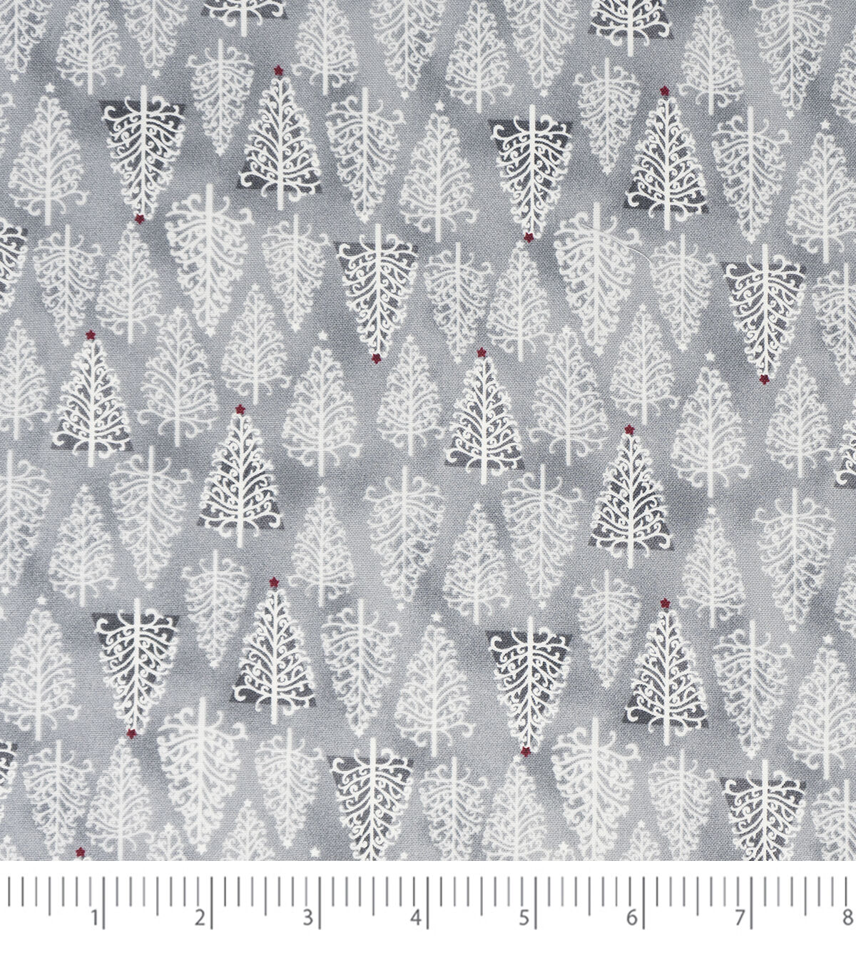 • Singer 18" x 21" Trees on Gray Christmas Cotton Fabric Quarter 1pc