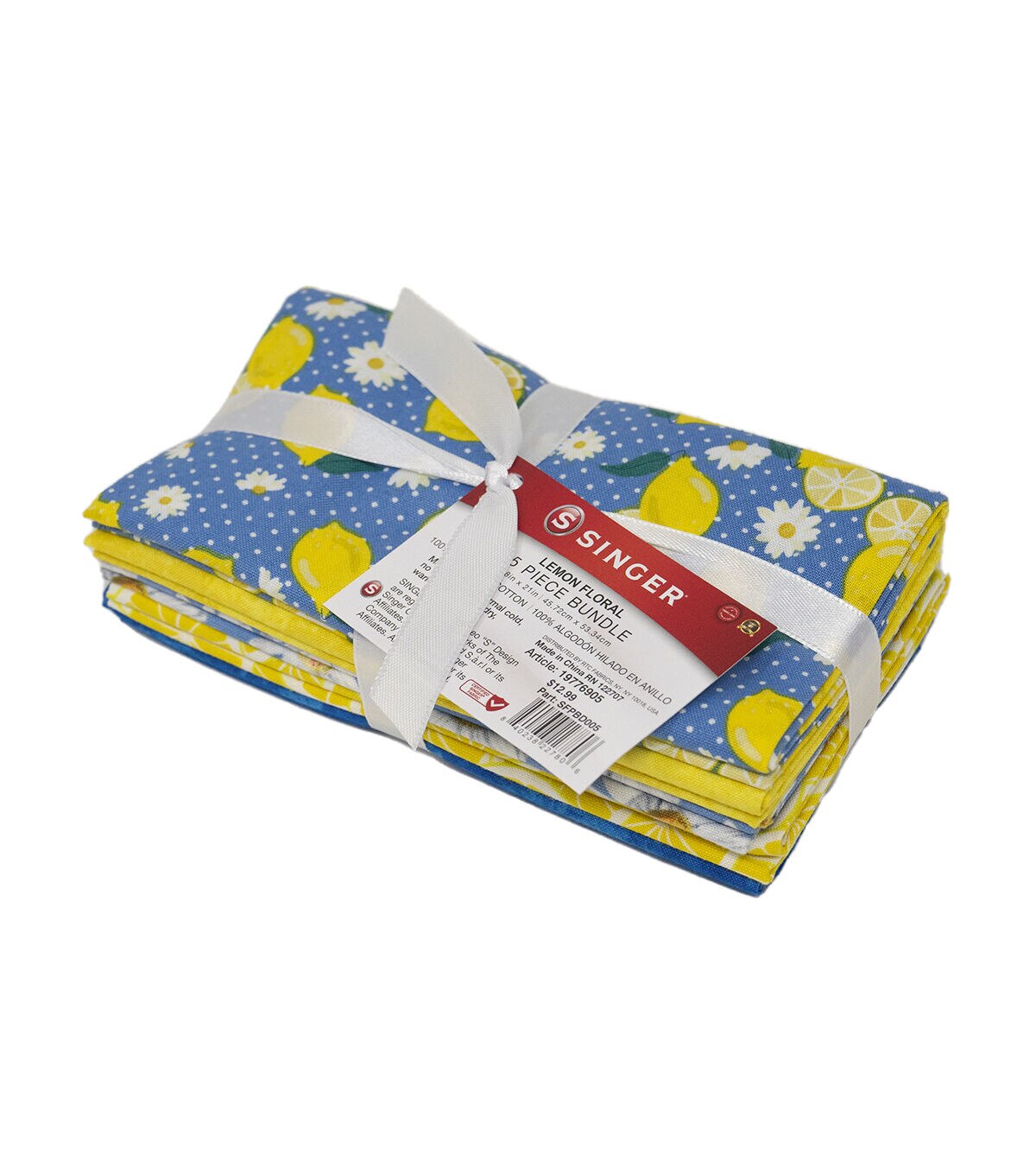 Bring a burst of sunshine into your next project with Singer's Yellow Lemon Floral Cotton Quarter Bundle. This 5-piece set of pre-cut fabrics is perfect for quick crafts or patchwork projects, and maintains the same quality and thermal properties as yardage options. The bright yellow and white floral patterns are sure to add a pop of color and cheer to any project.