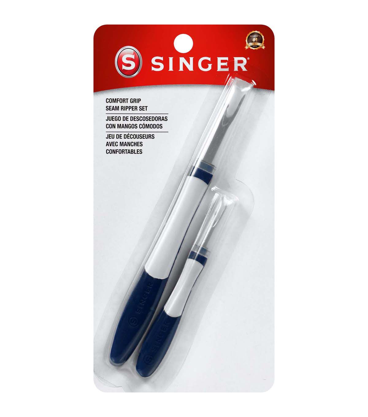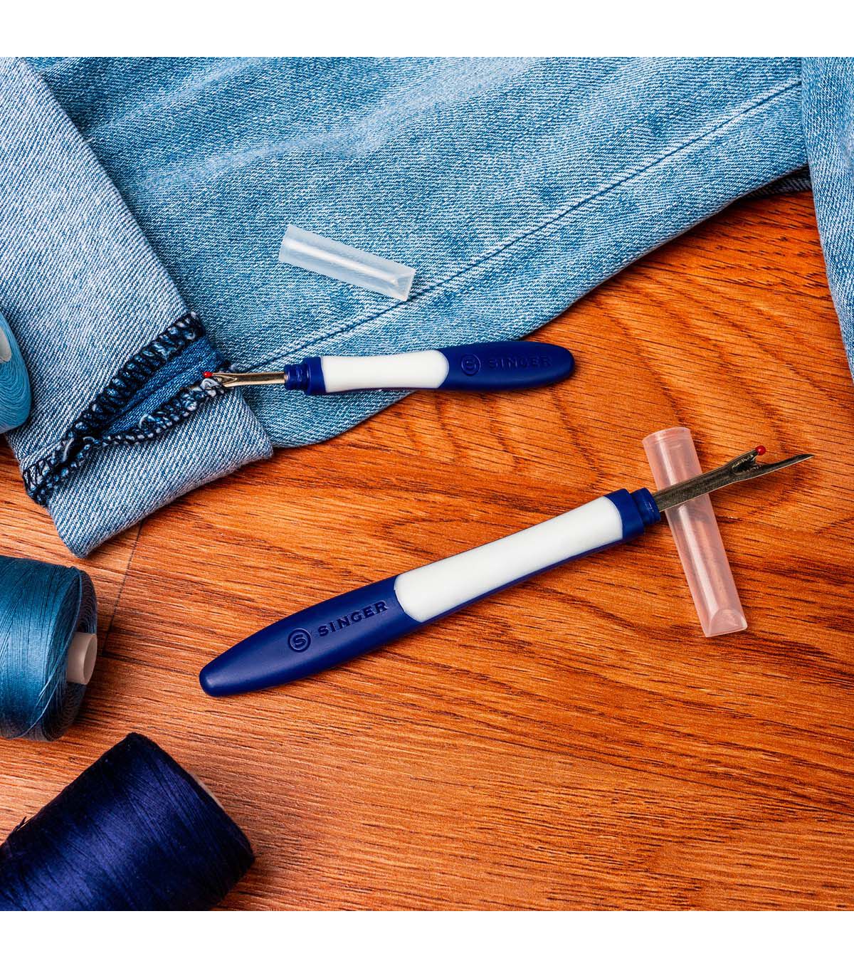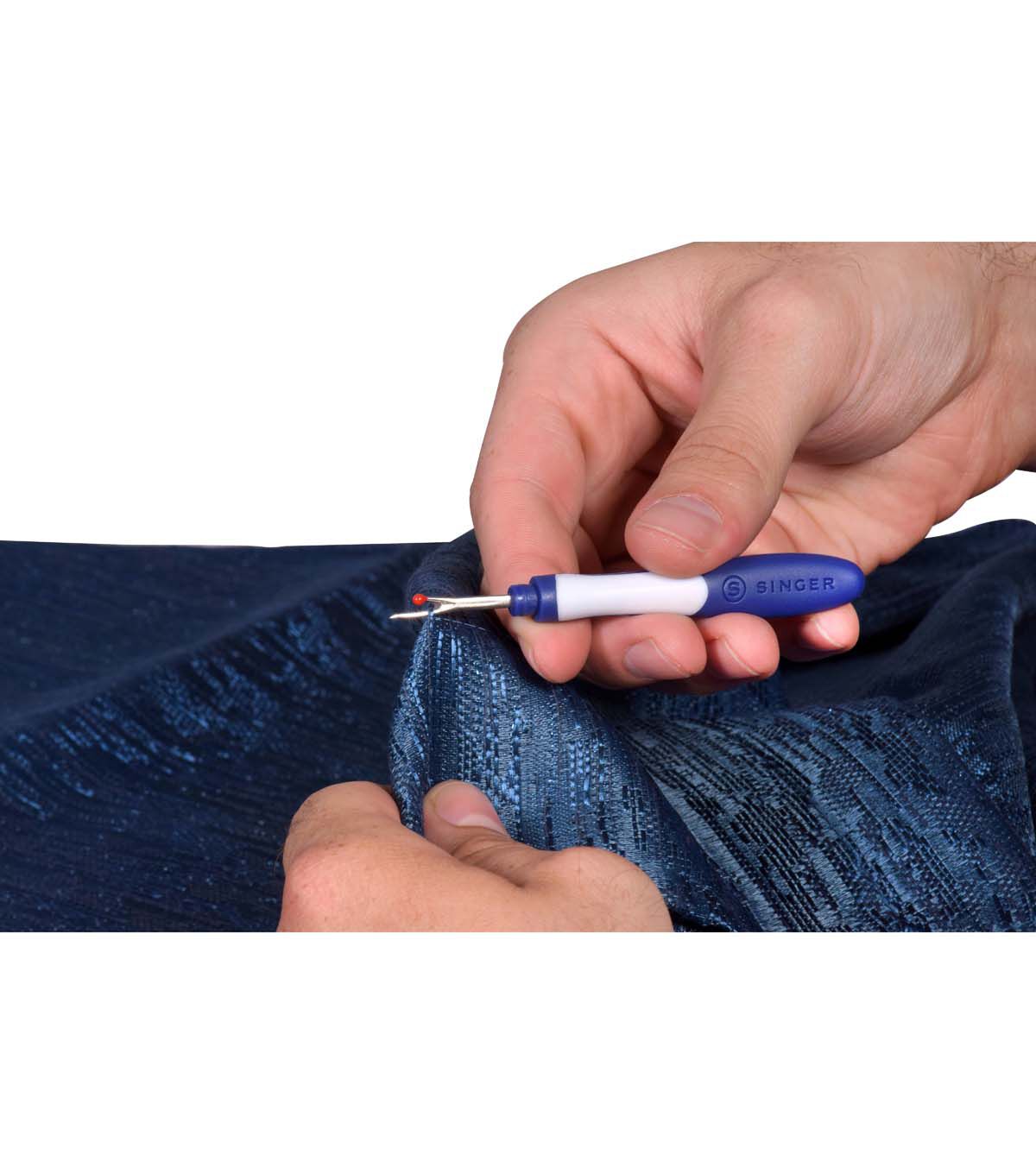 Whether you're a professional tailor or a DIY enthusiast, the SINGER Comfort Grip Seam Rippers 2-Pack is an essential tool for your sewing kit. These handheld seam rippers make it easy to pick threads, open stitched buttonholes, and remove buttons and snaps without damaging your fabric. With their blue and white comfort grip handles, these seam rippers are easy to hold and maneuver, making your sewing projects a breeze.