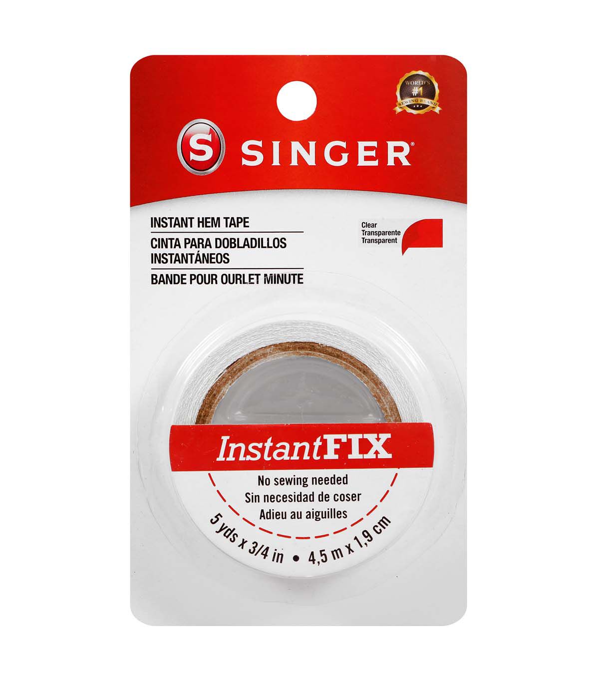 Looking for a quick and easy way to hem or cuff your clothes without sewing or ironing? Look no further than SINGER Instant Hems 'n Cuff Tape. This double-sided fabric tape bonds fabrics instantly, allowing you to raise, lower, alter, or repair clothing, draperies, upholstery, craft projects, and more. With 15 feet of .75 inch wide tape, you'll have plenty to tackle all your projects.