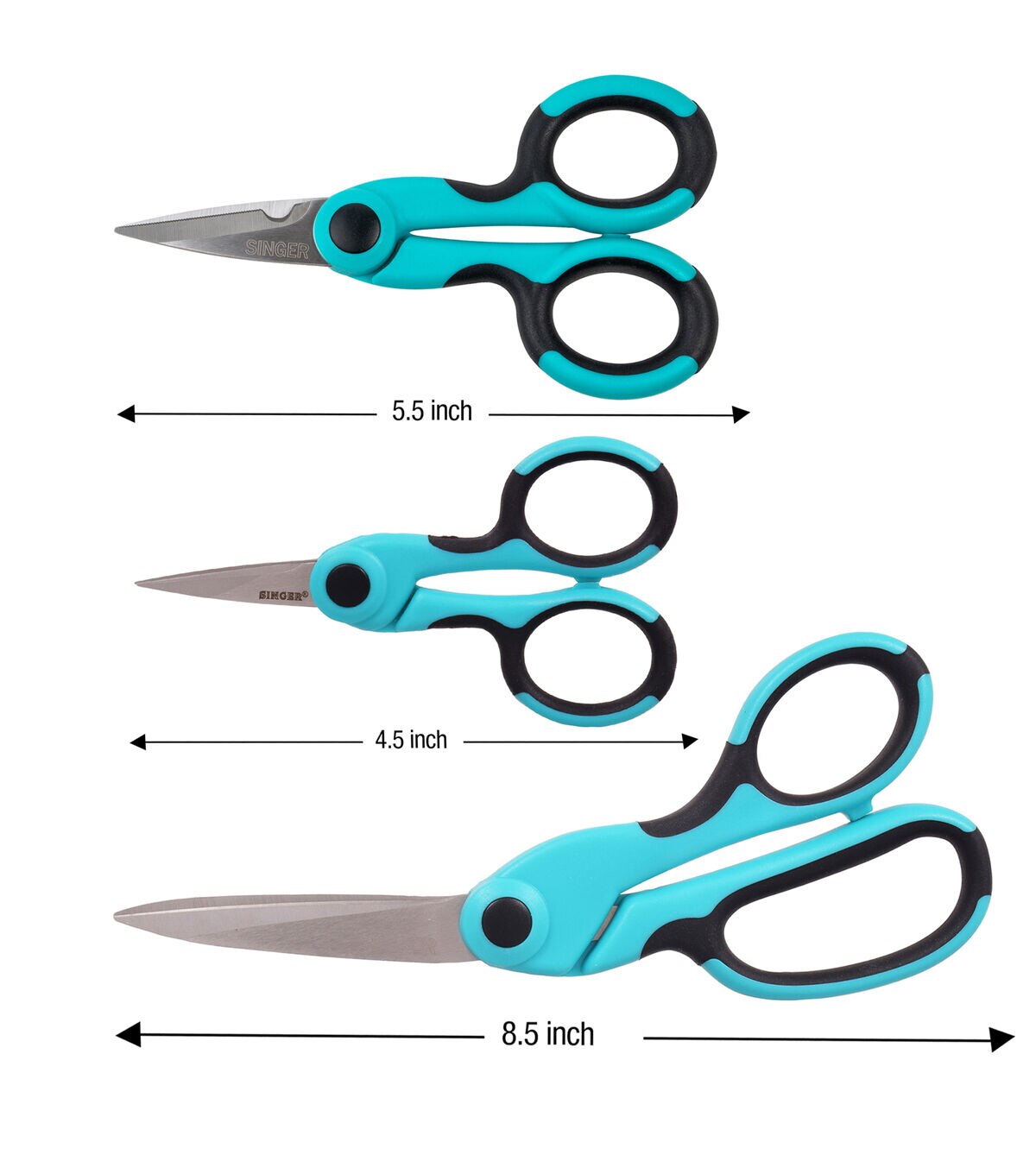 - Set includes 8 1/2" Heavy Duty Fabric Scissors, 5 1/2" Multipurpose Scissors, and 4 1/2" Detail Tailor Shears
