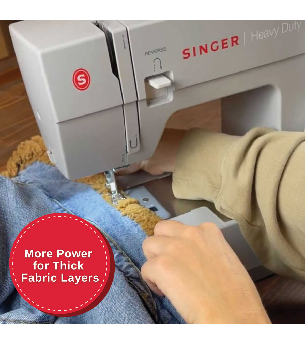 With 50% more power and enhanced speed, the SINGER Heavy Duty 4411 brings professional sewing results without breaking the bank. The 69 Stitch Applications include basic, stretch, and decorative sewing techniques, perfect for all types of fabrics. From canvas to denim, the Heavy Duty 4411 will be your go-to sewing tool for thick fabrics or layers. Sewing sheer or lightweight fabrics? No problem! The easily adjustable presser foot pressure makes sewing very lightweight fabrics a breeze. Enjoy convenient features to get your sewing projects done faster! The stainless steel bed-plate enables smooth fabric flow and the heavy-duty interior metal frame ensures skip-free sewing. The Top Drop-In Bobbin makes it easy to see your thread so you don't run out in the middle of a seam. And, you will love how the LED lighting illuminates your sewing area. Plus, four essential presser feet are included with your machine. SINGER provides all of the tools you need for a great start on your sewing journey! Whether you're creating home decor or mending jeans, you will love having this true workhorse, the SINGER Heavy Duty 4411, by your side!