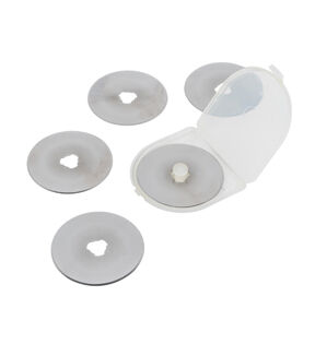 The SINGER 45 mm Rotary Cutter Replacement Blades are durable steel blades that are extremely sharp for precise cutting jobs. The replacement pack comes with five standard size 45 mm rotary blades in a convenient plastic storage case. These blades are perfect tools for precision cutting, even with multiple layers of fabric or paper. Designed as replacement blades for the SINGER Lock ‘n Roll Rotary Cutter, these blades are standard size blades that can also be used with other brands of 45 mm rotary cutters, including SINGER, Fiskar, OLFA, and others. These rotary blades can be used for everyday household tasks such as DIY projects and cutting cardboard or twine, for sewing and quilting projects that require cleanly cutting multiple layers of fabric, or for arts and crafts projects such as stenciling and scrapbooking. With so many ways to use these rotary blades, it’s always good to have a few replacements on hand. SINGER rotary cutter replacement blades are the ideal blades for sewists, craftivists, and hobbyists.