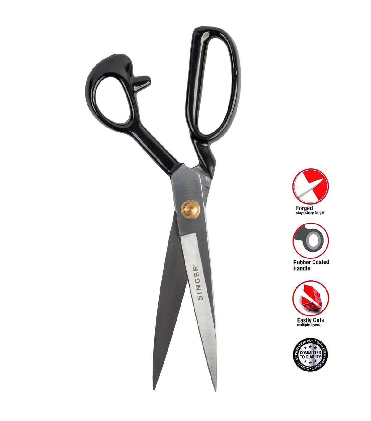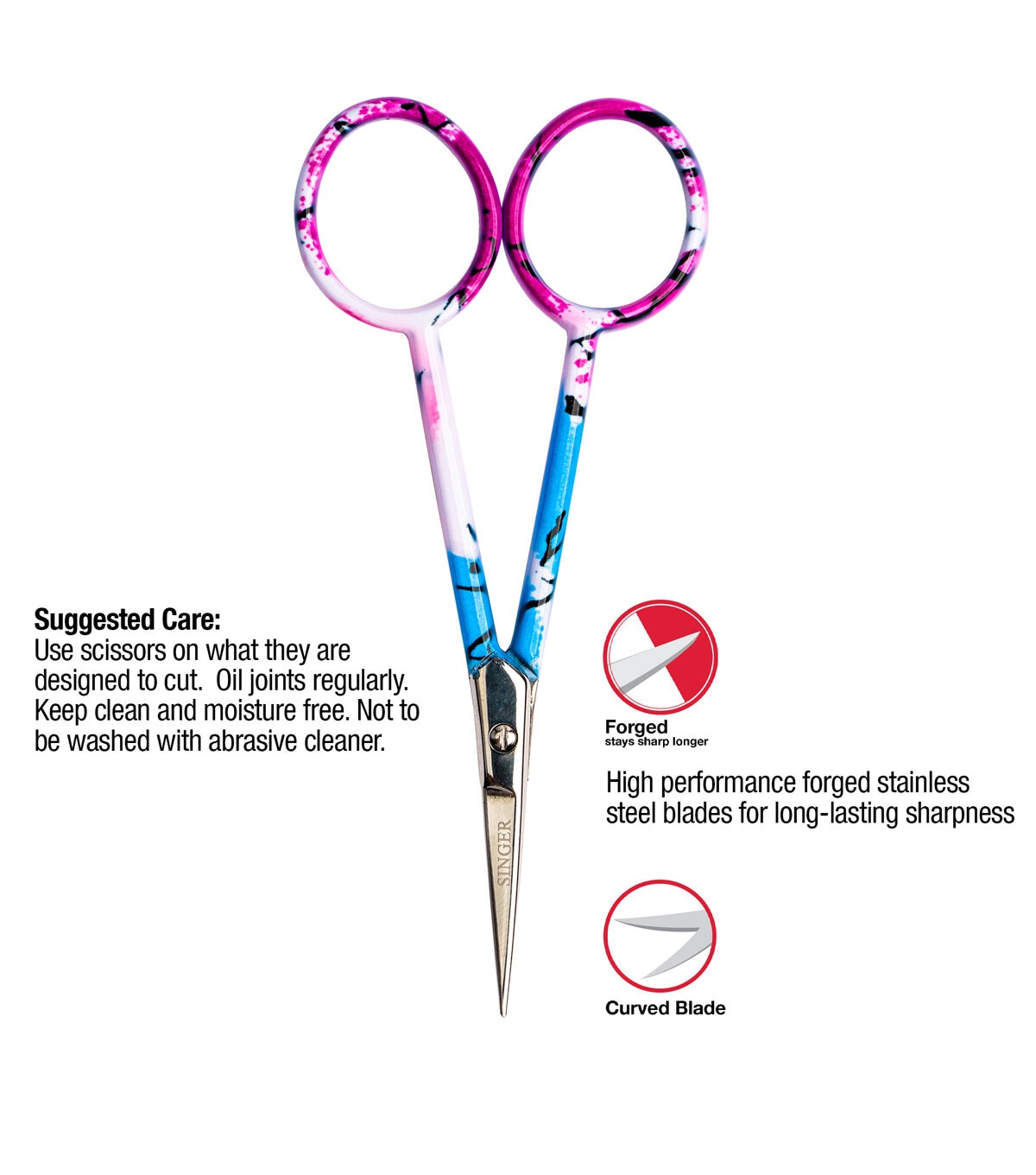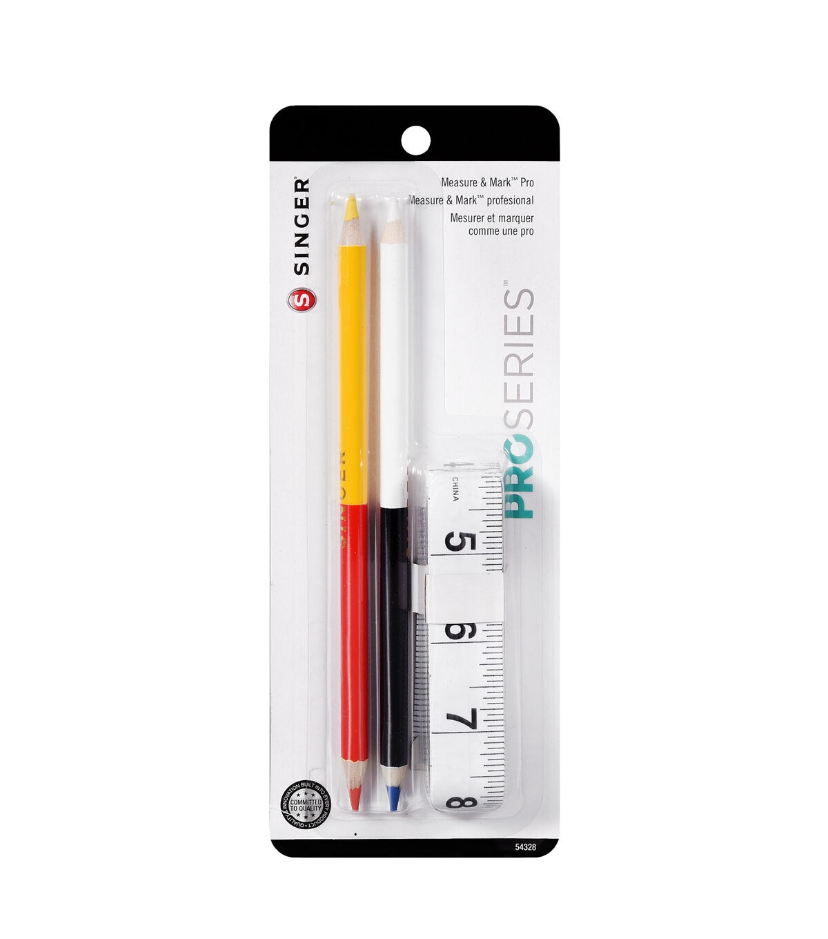 The ProSeries Tailor Scissors are a heavy-duty 12” cutting tool with chrome plated blades and rubberized handles that ensure a comfortable grip.The SINGER Graffiti Print Embroidery Scissors have a colorful graffiti print handle and feature a sharp, stainless steel blade with a curved tip for precision cutting. The ProSeries 144” Tape Measure is a durable white tape measure printed with black markings in both inches and centimeters for easy conversion and accurate measurement. It also comes with (2) dual-colored fabric marking pencils, one in yellow and red, the other in black and white. This sewing set provides a set of high-quality sewing tools that make a great addition to any sewing kit.