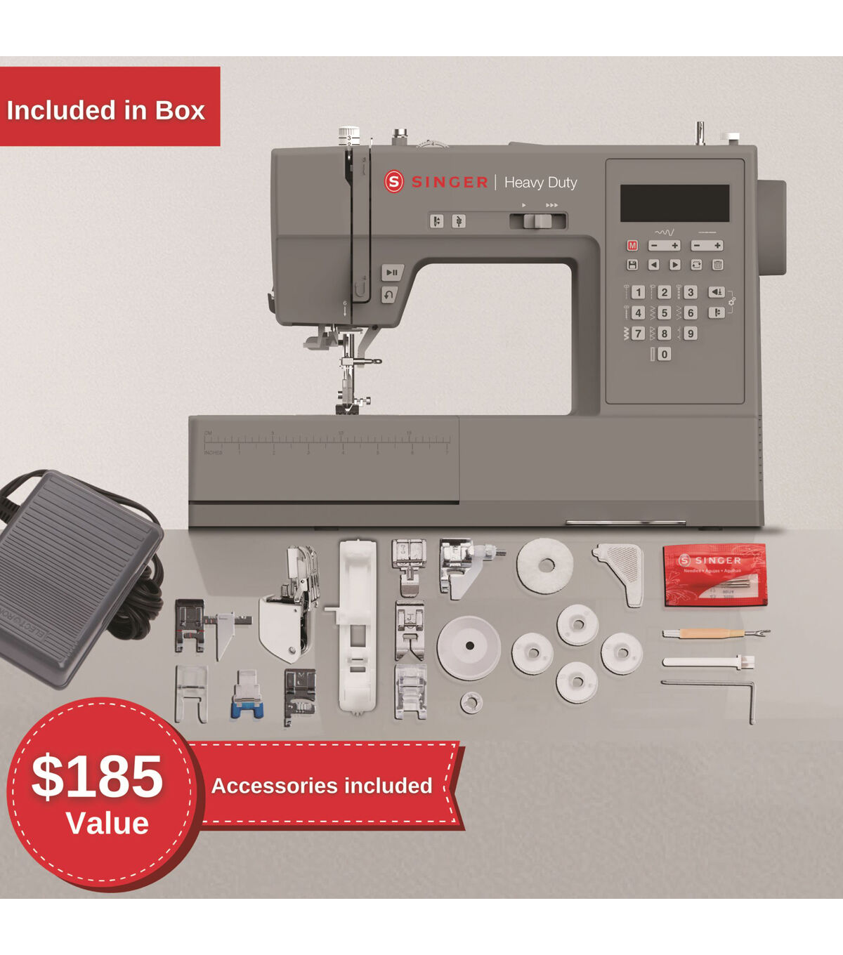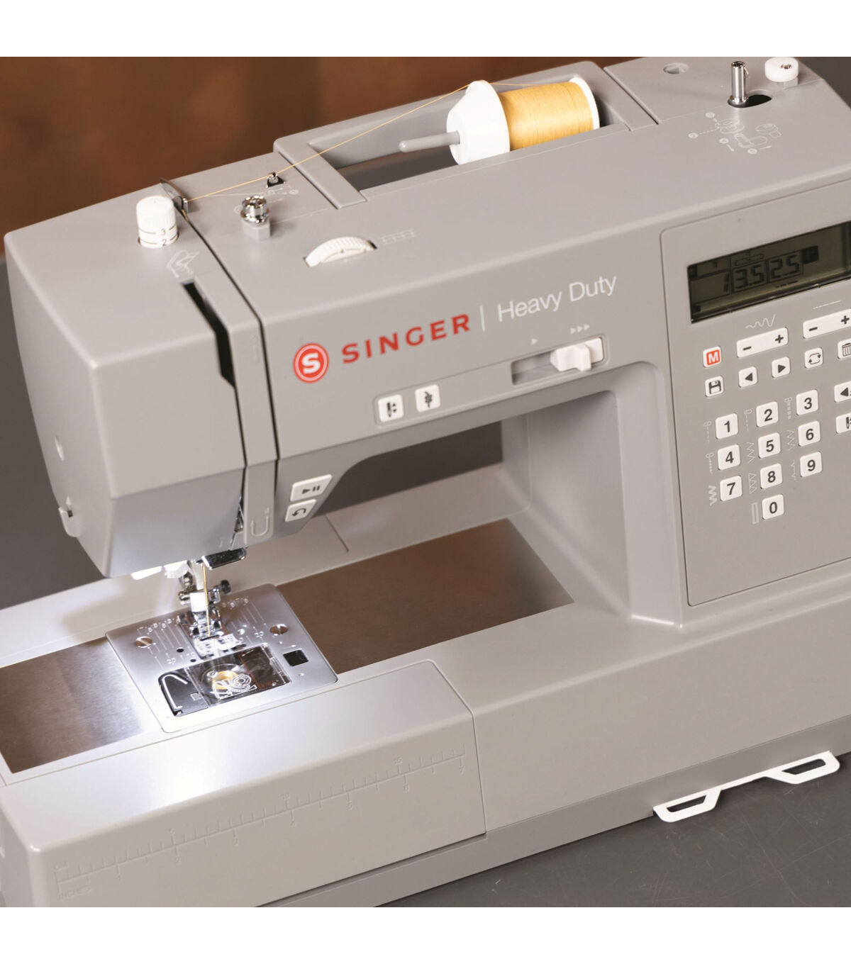 The SINGER heavy duty 6700C gives you the best of both worlds in heavy duty sewing and endless creative possibilities! With a heavy duty metal frame, powerful motor, and loads of easy-to-use features, the SINGER heavy duty 6700C is a true workhorse. From denim to canvas, the heavy duty 6700C is designed with your heavy duty projects in mind. Thanks to the machine’s powerful motor, you’ll have the needle piercing power and extra high sewing speed to take on your heavy duty sewing projects with ease. In addition to strength, speed, and enhanced power, enjoy incredible creative capabilities. A wide range of basic, stretch, and decorative stitches, plus a lettering font provide loads of creative options for personalizing your projects. Along with power and creativity, this sewing workhorse offers easy-to-use features to make your sewing fast and fun. Select stitches with a simple touch of a button. Clearly view your selected stitch, along with stitch settings, on the clear LCD screen. The SINGER heavy duty 6700C sewing machine also includes carefully selected accessories to bring your sewing projects to life. Ten hand-picked sewing and quilting presser feet are included. Easily embellish with the SINGER Cording Foot by adding decorative cords, thin braids, or yarn to projects. Have jeans to hem? The SINGER Blind Hem foot makes hemming pants easier than ever! SINGER includes the tools needed to make sewing super easy while adding a professional touch to your projects! Whether you’re designing original garments, upcycling jeans, or transforming your home with custom home decor, ensure a great start on your sewing journey with the SINGER heavy duty 6700C by your side!