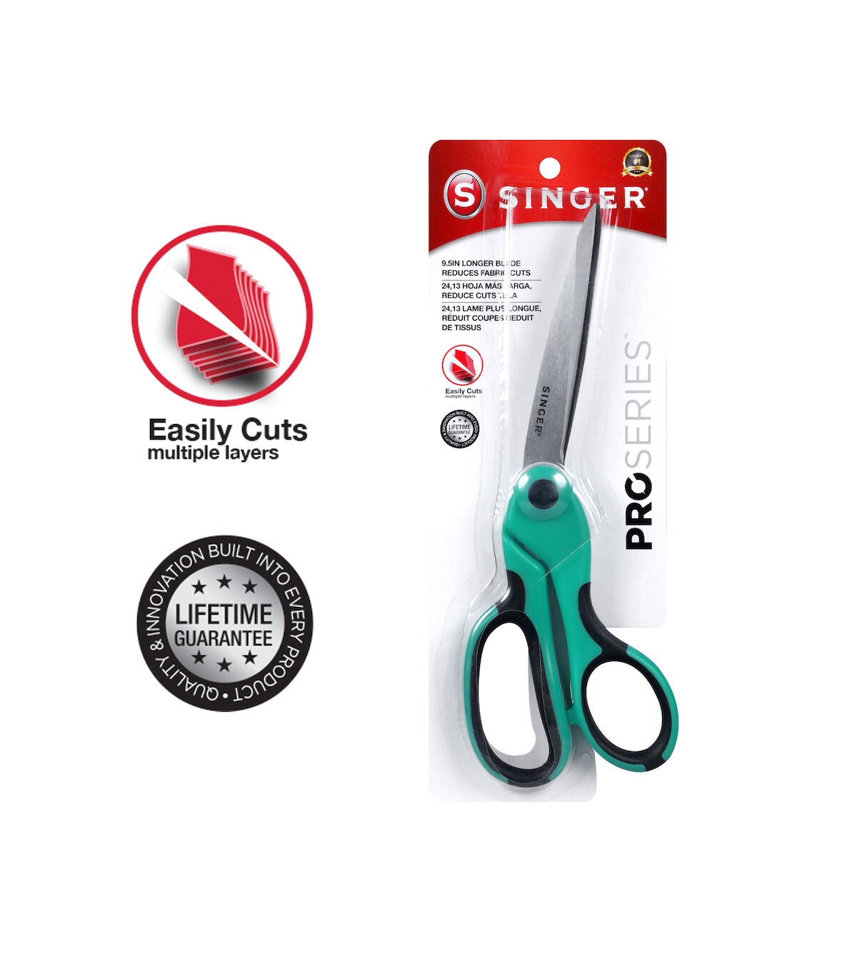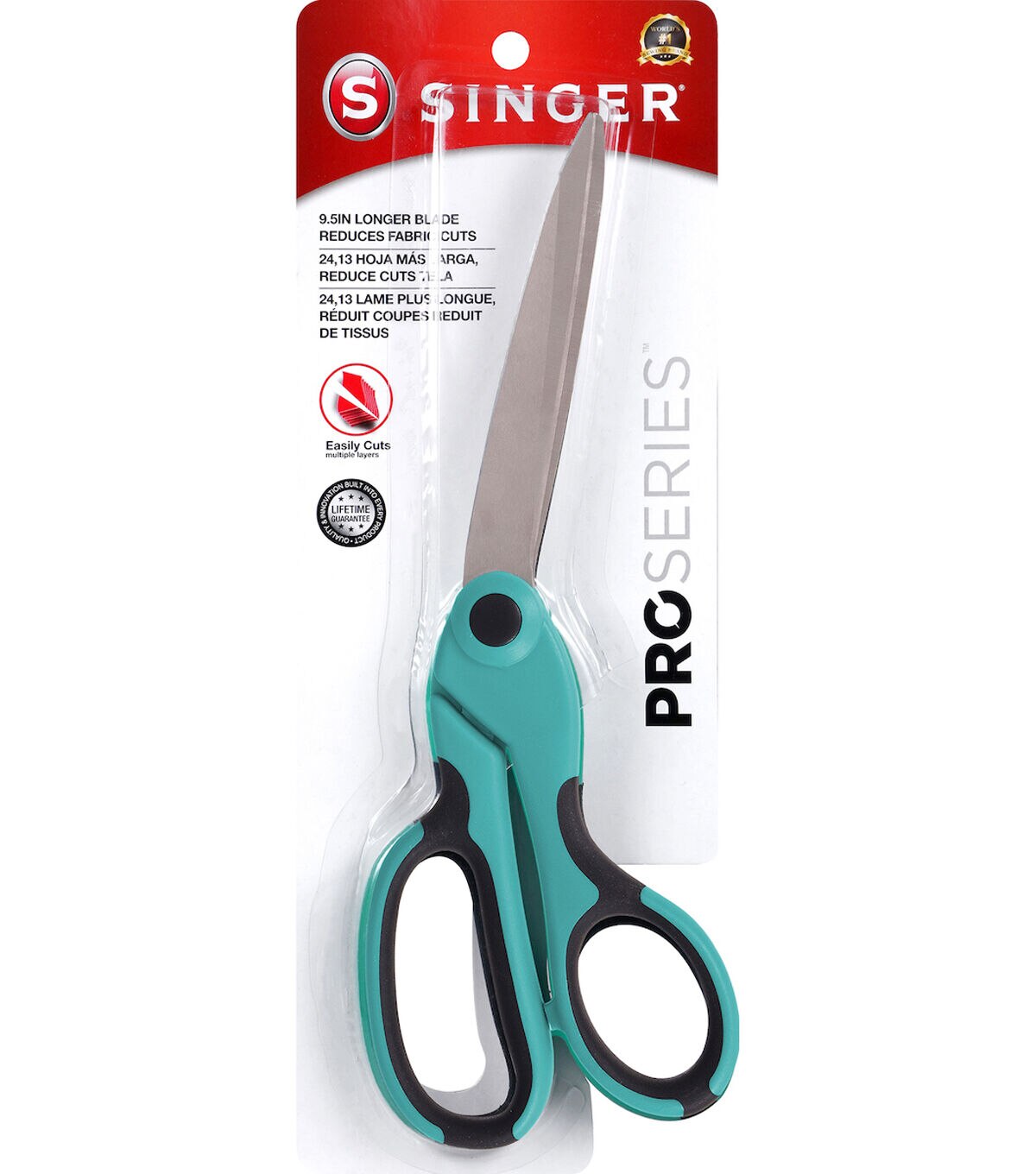 These SINGER ProSeries 9 ½-inch bent scissors are a favorite among dressmakers and clothing tailors. Strong and comfortable to use, the shears cut through multiple layers of fabric easily. The blades are tempered and ground on both sides to ensure sharpness, smooth cutting and rust resistance. Each pair of shears fits left- and right-handed individuals and has been individually inspected and hand tested to ensure quality and comes with a lifetime guarantee.