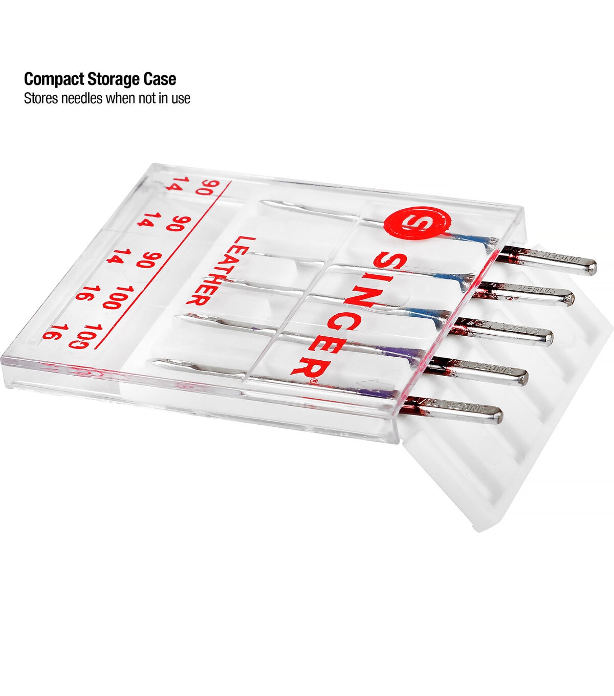 - To prevent needles from going dull when not in use, store needles in the compact transparent case which includes size marking on its cover