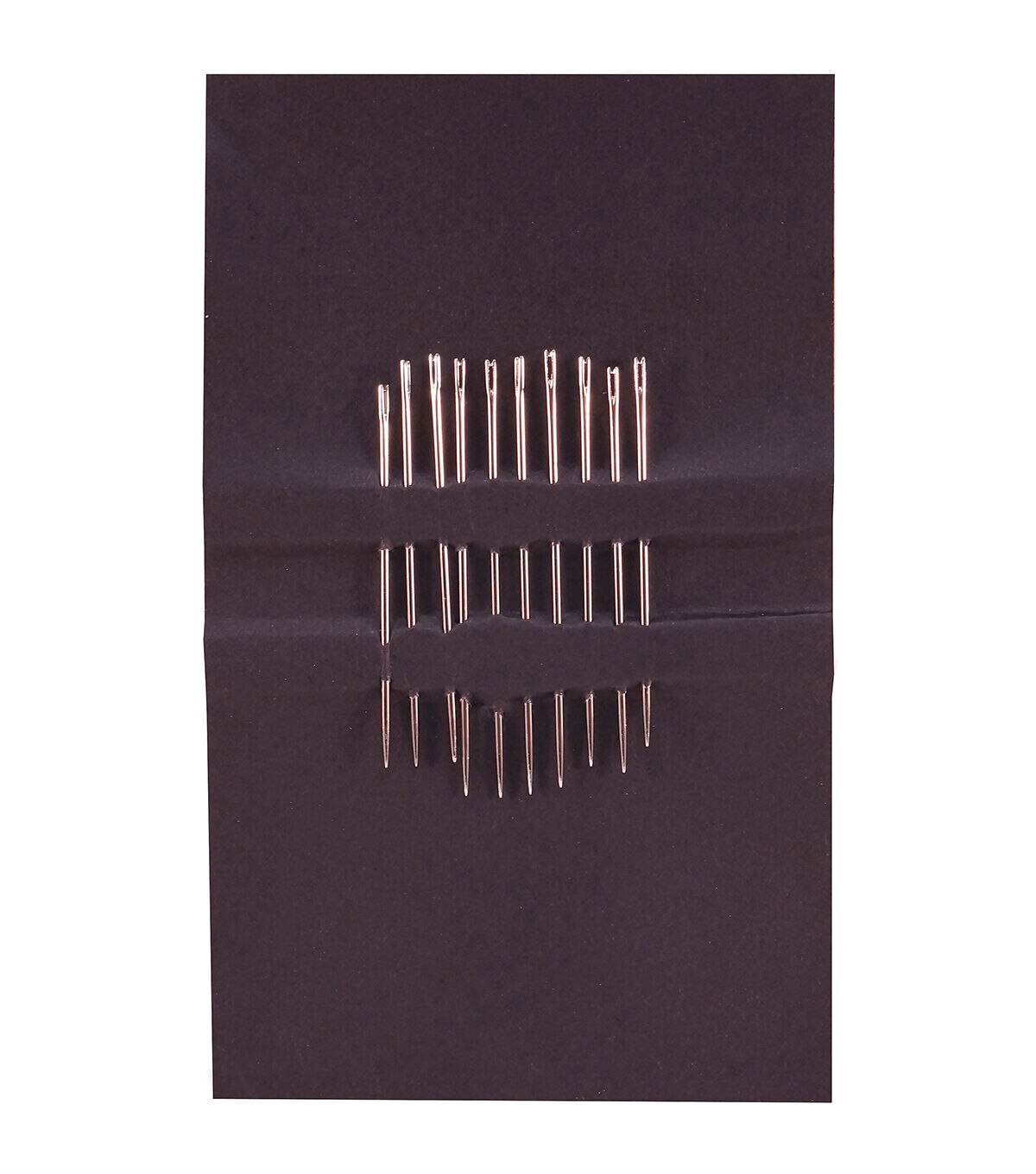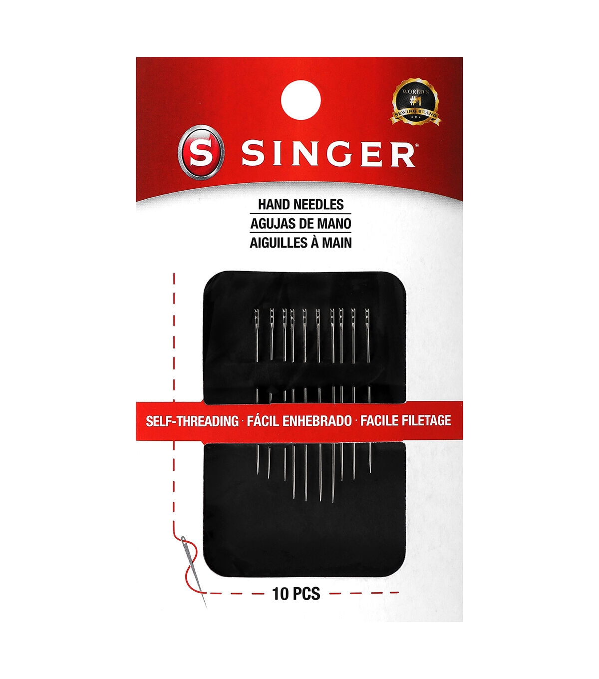Thread your needle with ease using the Singer Assorted Self-threading Hand Needles. This set of 10 self-threading needles comes in assorted sizes and works perfectly for multiple projects. These needles will save time and not strain your eyes. You can simply slip the thread into the groove at the top of the needle’s eye and pull it down into the eye to thread the needle.