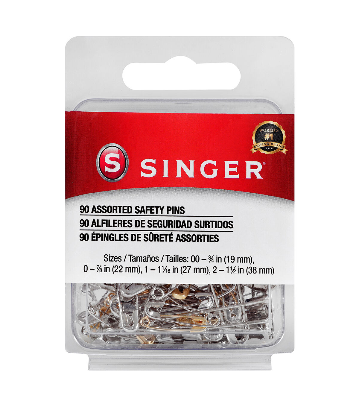 Use the Singer Assorted Safety Pins for quilting, crafts and garment fixes. This pack of 90 safety pins is available in four different sizes including 0 – 0.75 inch, 0 – 0.87 inch, 1 – 0.68 inches and 2 – 1.5 inches. These safety pins are designed with fasteners made of nickel-plated steel and gilt-plated steel, which are rust resistant and durable.