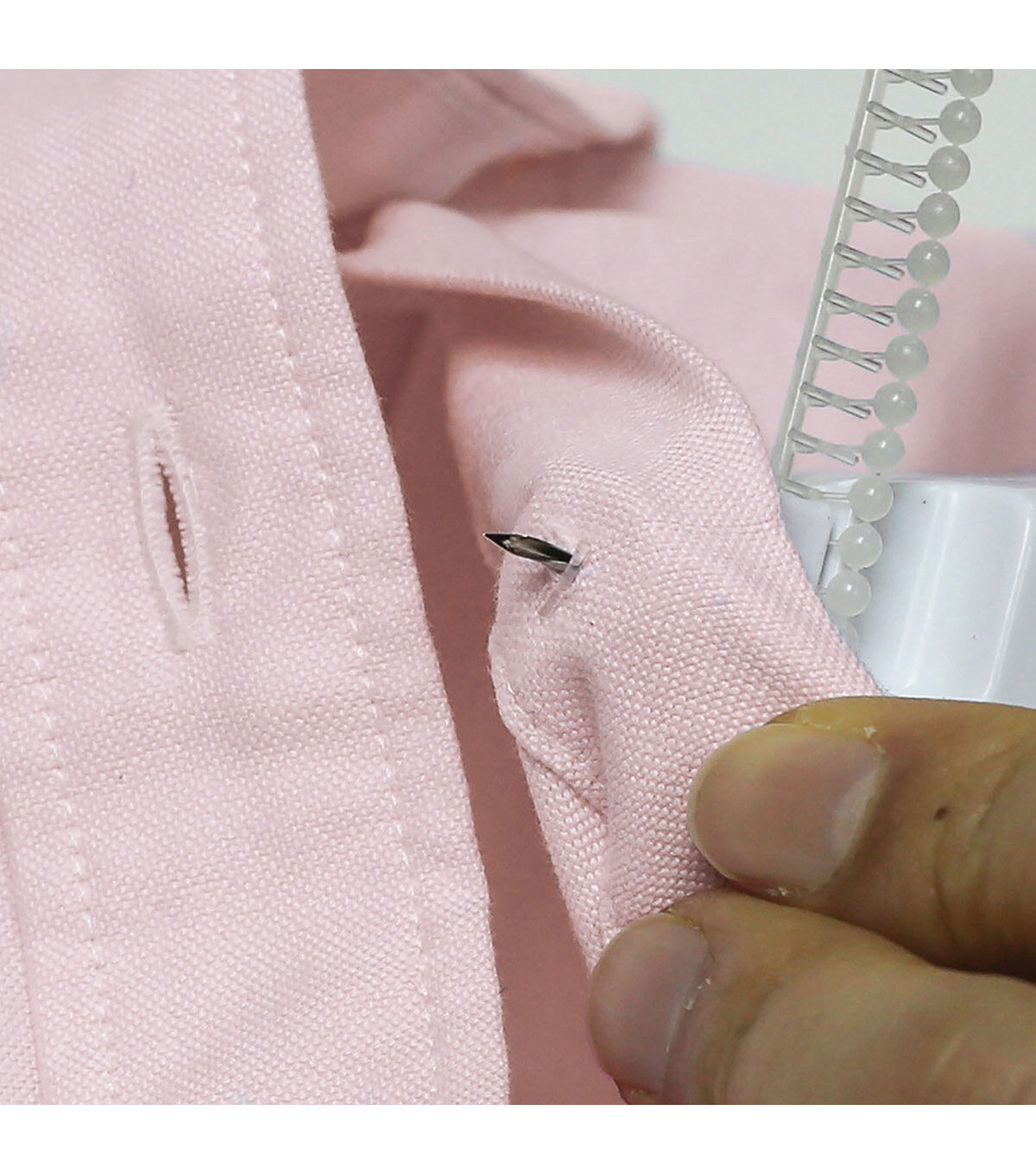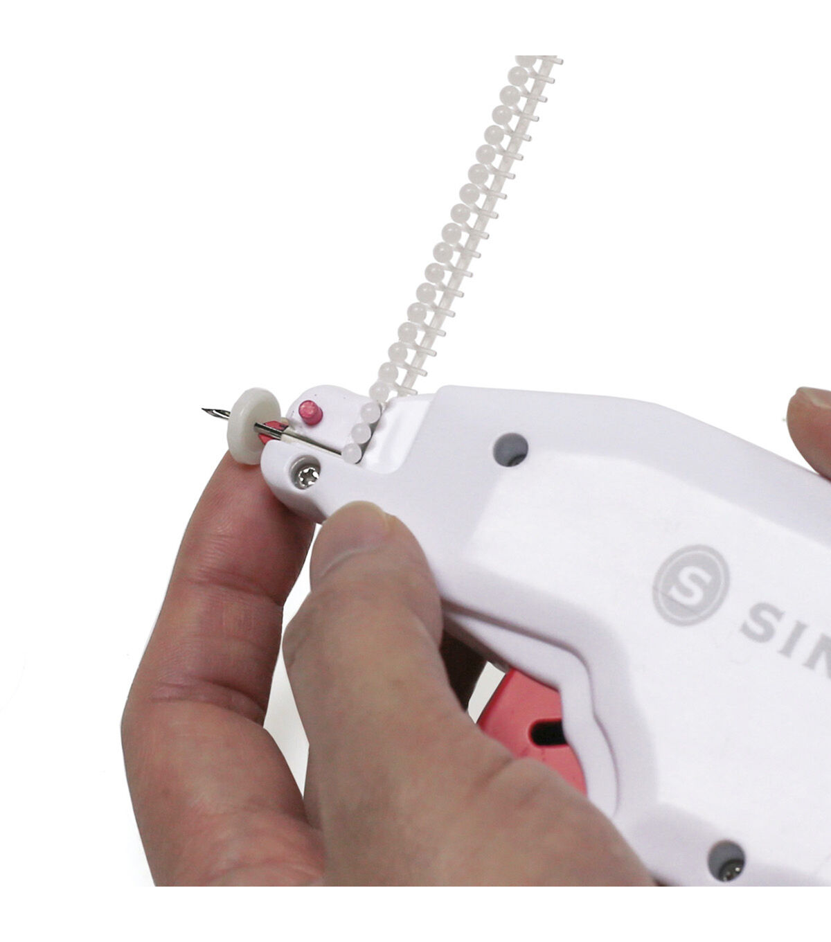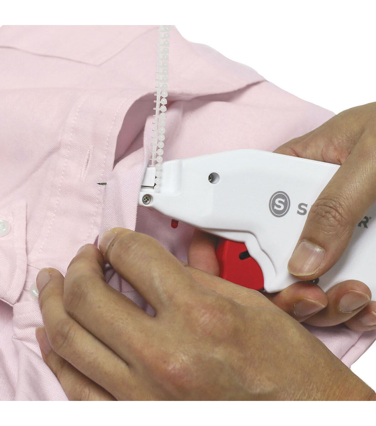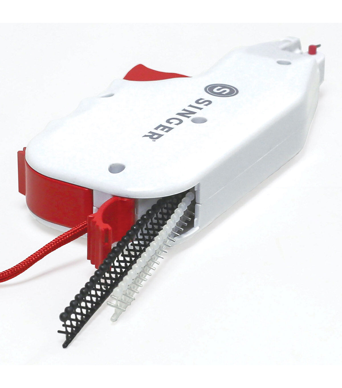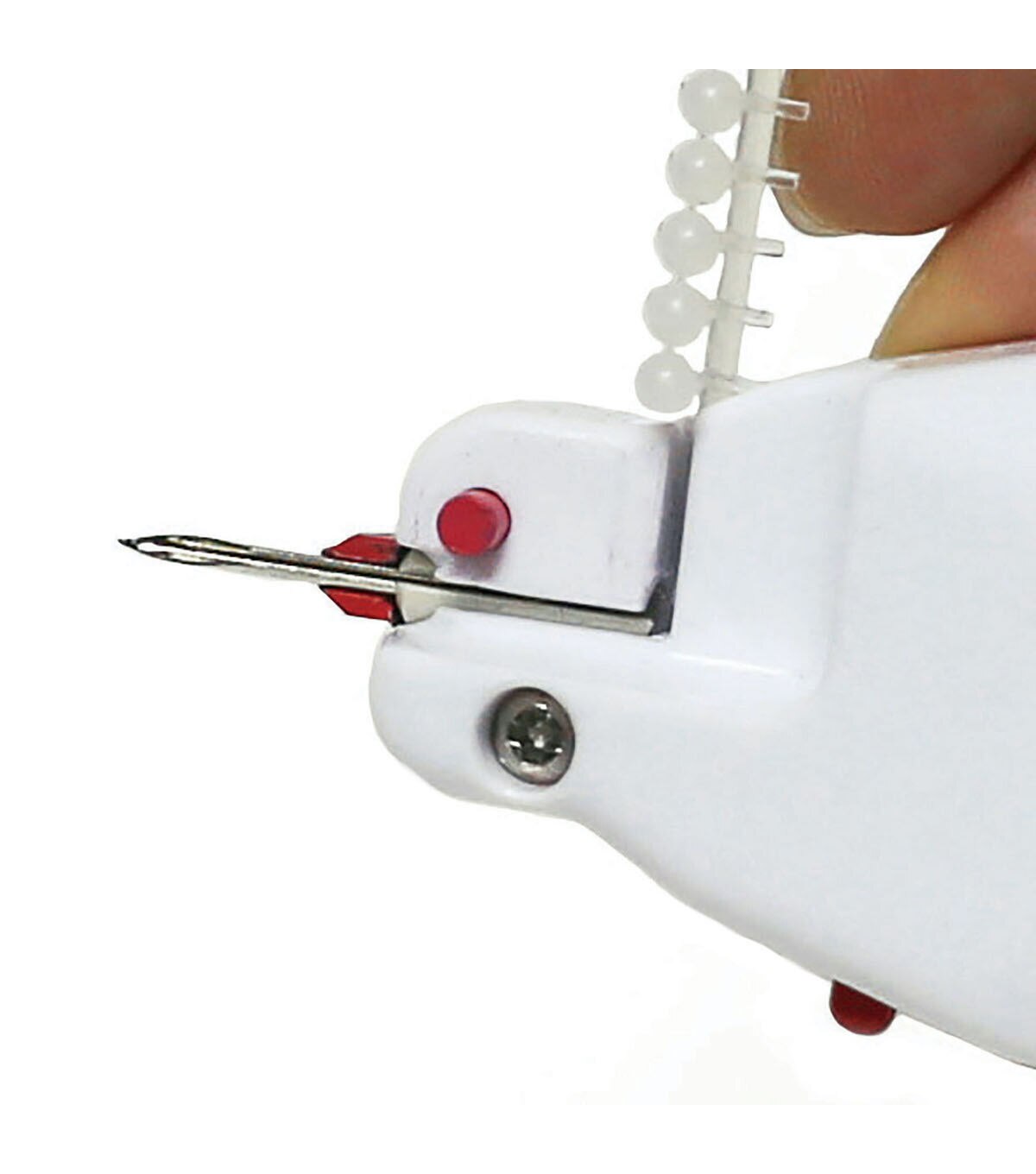 The Singer Button Fast Quick-fix Button Replacement Tool is the perfect hand-held tool for quick, emergency button replacements on the go. It easily attaches various types of buttons to your fabric without the need for sewing. This tool is designed with a built-in storage compartment that comes with two fastener strips in black and clear shades and 12 single-hole replacement buttons. A simple pull of the trigger pushes the fasteners through the button and the fabric, securing the button in place. Attach the protective needle cap for safety when not in use.