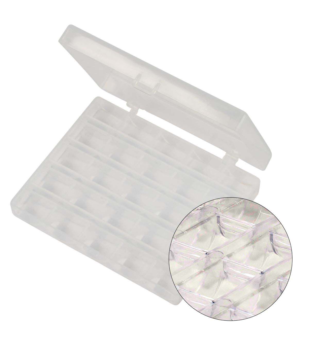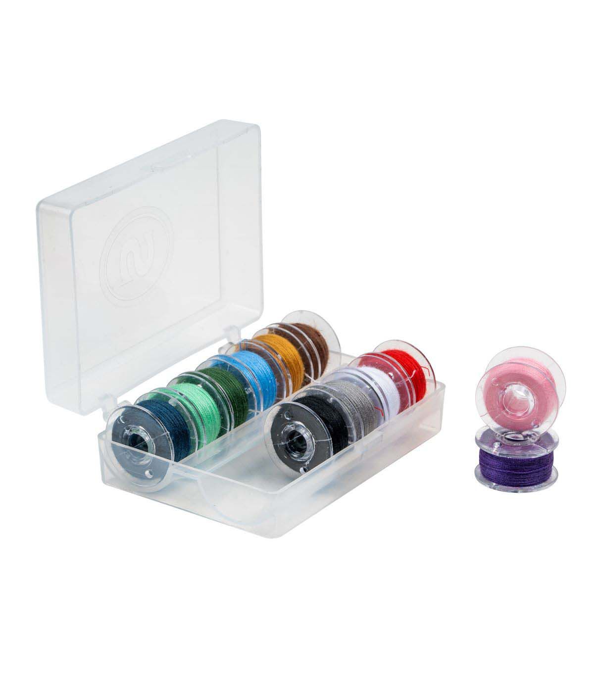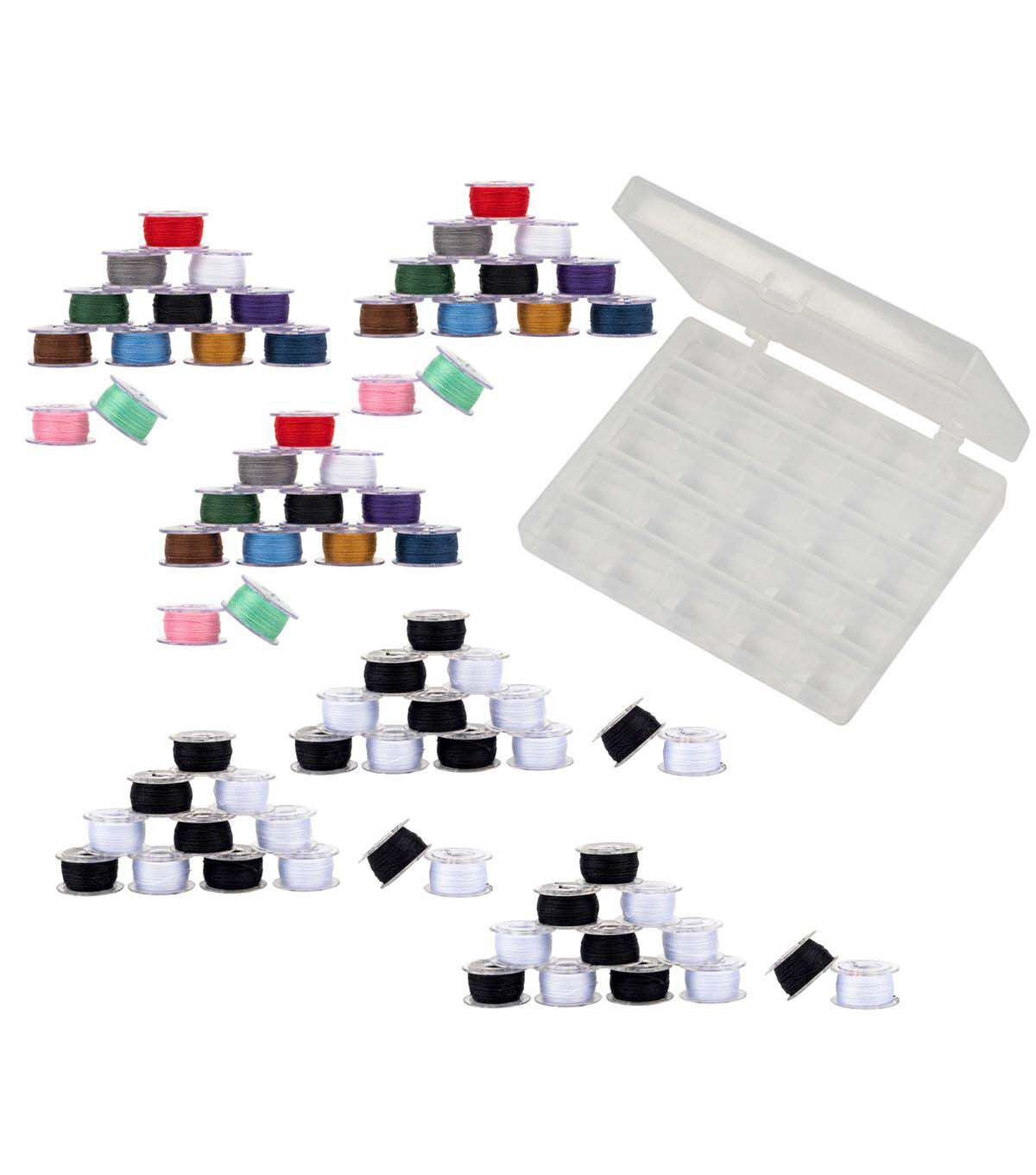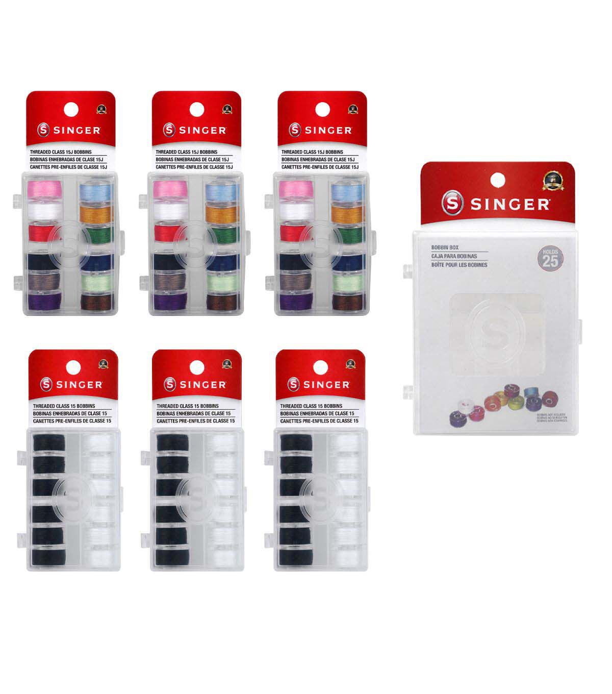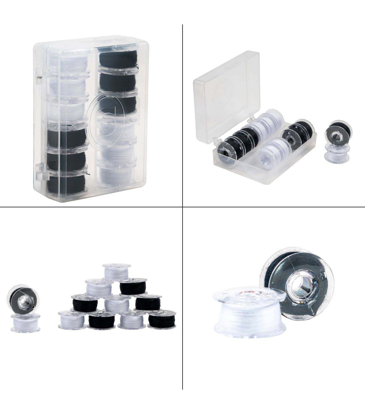 The SINGER Class 15J Sewing Bobbin Set is a machine sewist’s dream! Each of the six bobbin sets comes in its own case, which is made of clear plastic for easily picking out the color bobbin needed. The bobbin storage cases have snap-tight latches to keep contents secure. In addition to the bobbin sets, an additional bobbin storage box is included for extra bobbin storage. The storage box can hold up to 25 different bobbins, neatly coordinated by color, thread weight or usage. Made of transparent plastic, the extra bobbin storage case has a clear lid. No more searching through a drawer or sewing kit full of loose bobbins and other sewing machine accessories to find the right color or thread weight for your sewing project. With this bobbin and storage bundle, your thread bobbins will stay neat organized and easily accessible for your next machine sewing project.