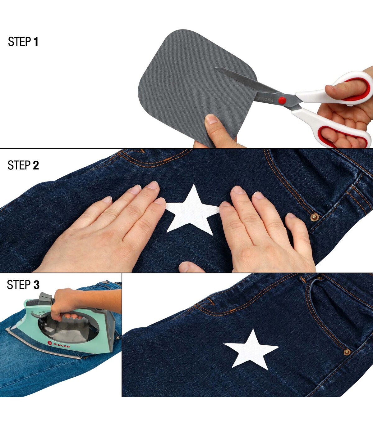 The SINGER DIY Iron-On Fabric Patch Kit is the easy solution for both apparel repairs and stylish fabric embellishments.