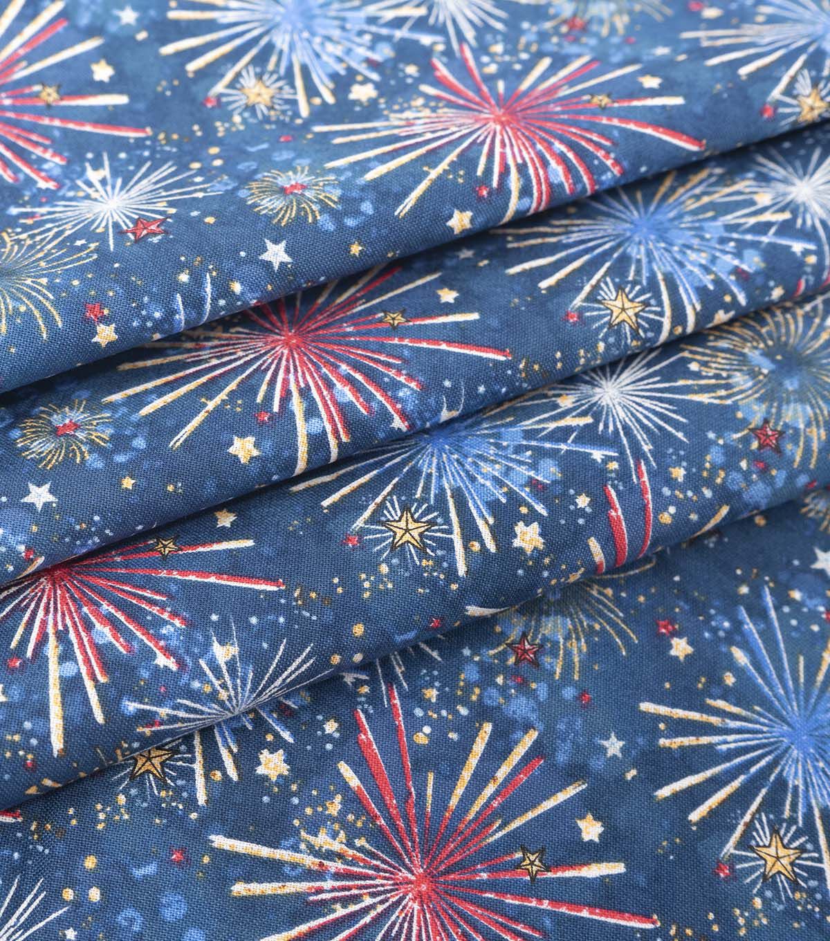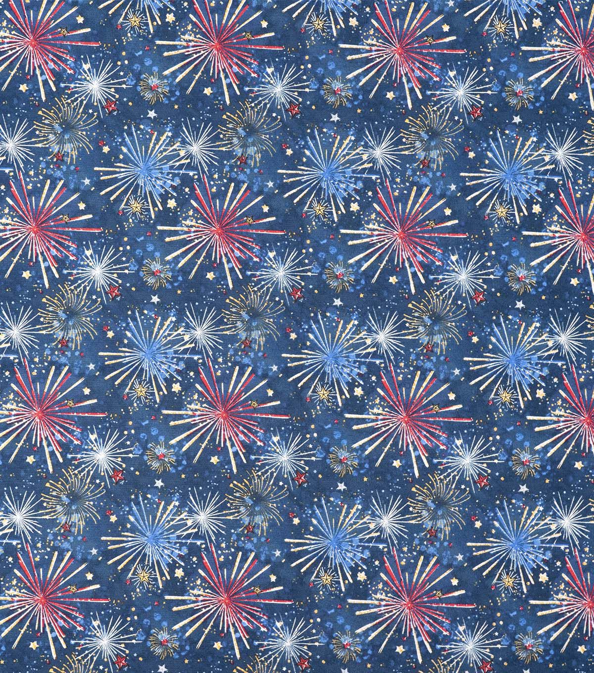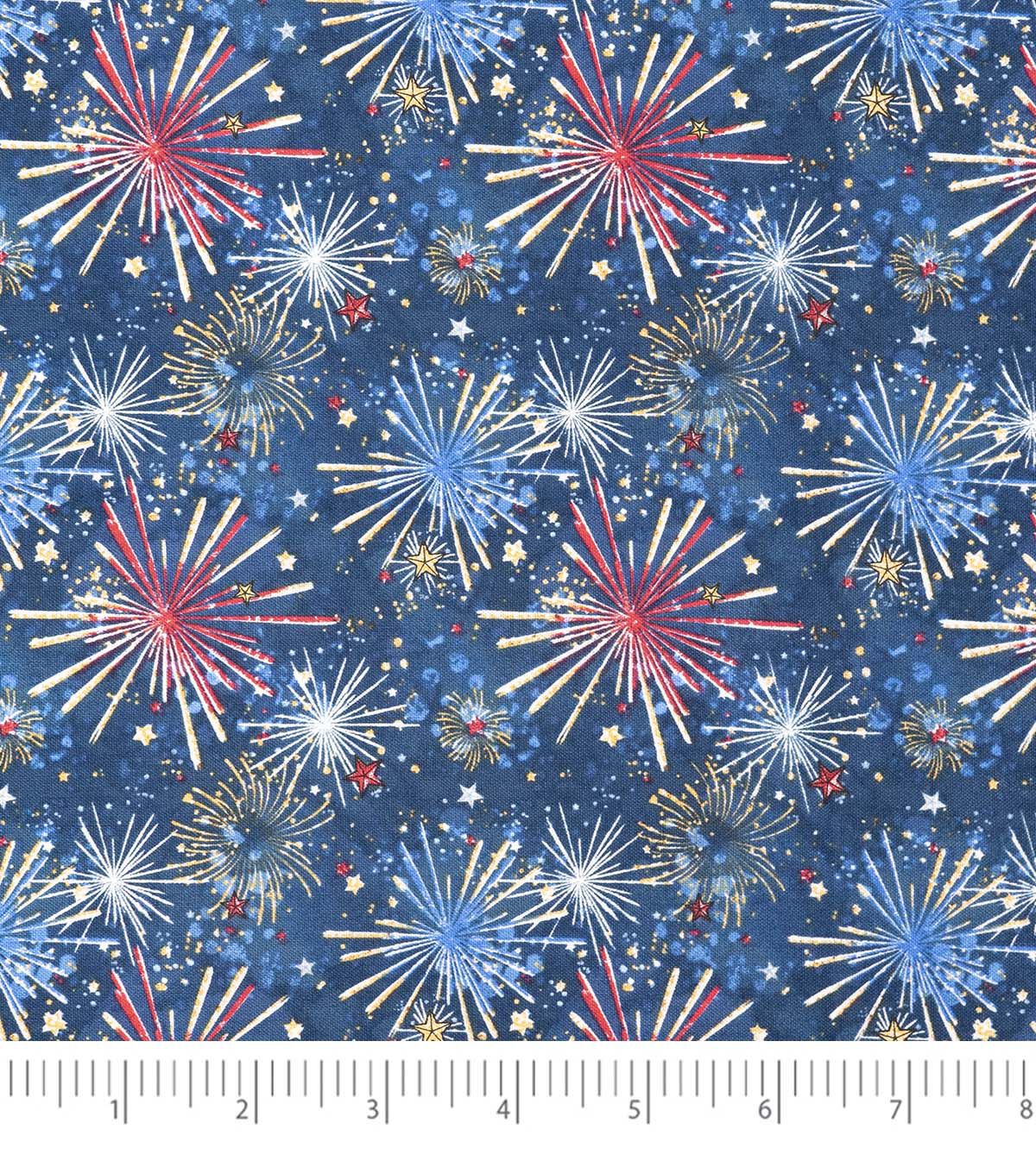 Get Ready for Your Next Patriotic Project with Our Firework Bursts on Blue Cotton Fabric