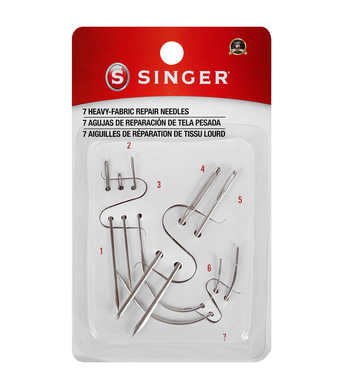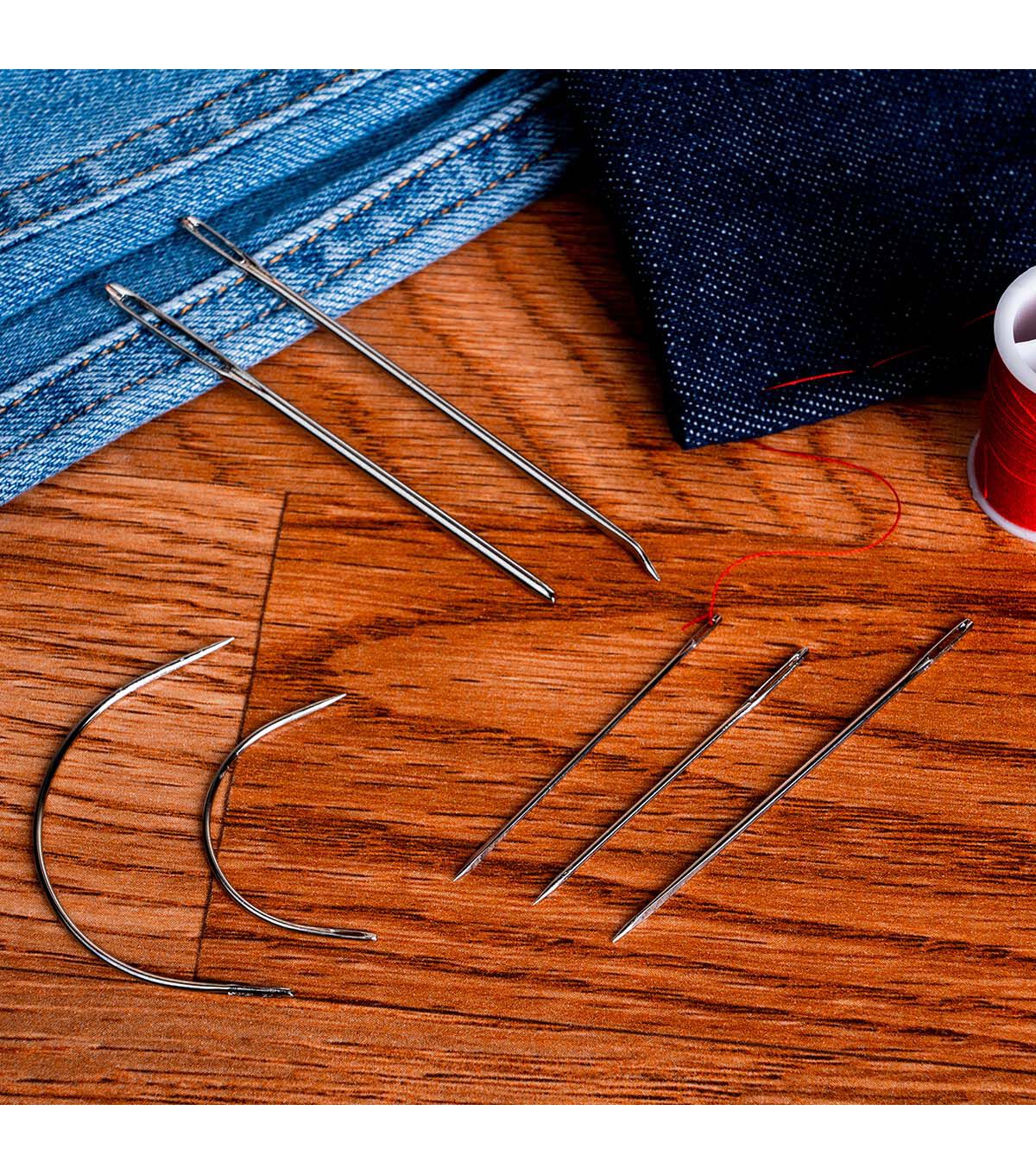 Any sewer or craft enthusiast will love to have the Singer Heavy-fabric Repair Needles in their sewing kit. These strong heavy-duty needles are ideal for repairing rips in carpets, canvas, coats or tents and tufting upholstery or re-stitching seams on leather, mattresses and fur. Made of nickel-plated steel, these needles are strong and will last long. This pack of fabric-repair needles includes two upholstery needles, a canvas needle, a carpet needle, a leather needle, a sack needle and a sail needle. The canvas and leather needles are designed with triangular shafts to avoid tearing fabric and materials.
