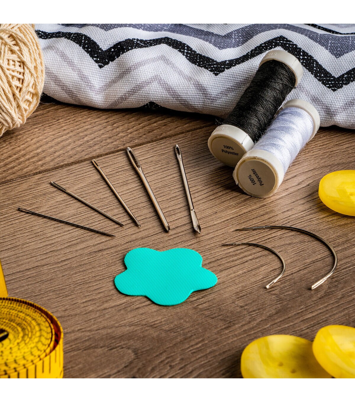 The Singer Heavy-fabric Repair Kit is the perfect addition to a craft enthusiast's tool kit. This pack includes two upholstery needles, a canvas needle, a carpet needle, a leather needle, a sack needle and a sail needle. These needles are ideal for repairing rips in carpets, canvas, coats and tents, tufting upholstery or re-stitching seams on leather, mattresses and fur. Made of nickel-plated steel, these needles are durable and last long. Thirty yards of heavy-duty indoor and outdoor threads in black and white shades are also included in this pack. You can also use the included needle puller for easy gripping when working with heavy materials such as leather or thick tweed. With the canvas and leather needles designed in triangular shafts, you do not have to worry about snags. Keep a kit on hand for home decor emergencies.