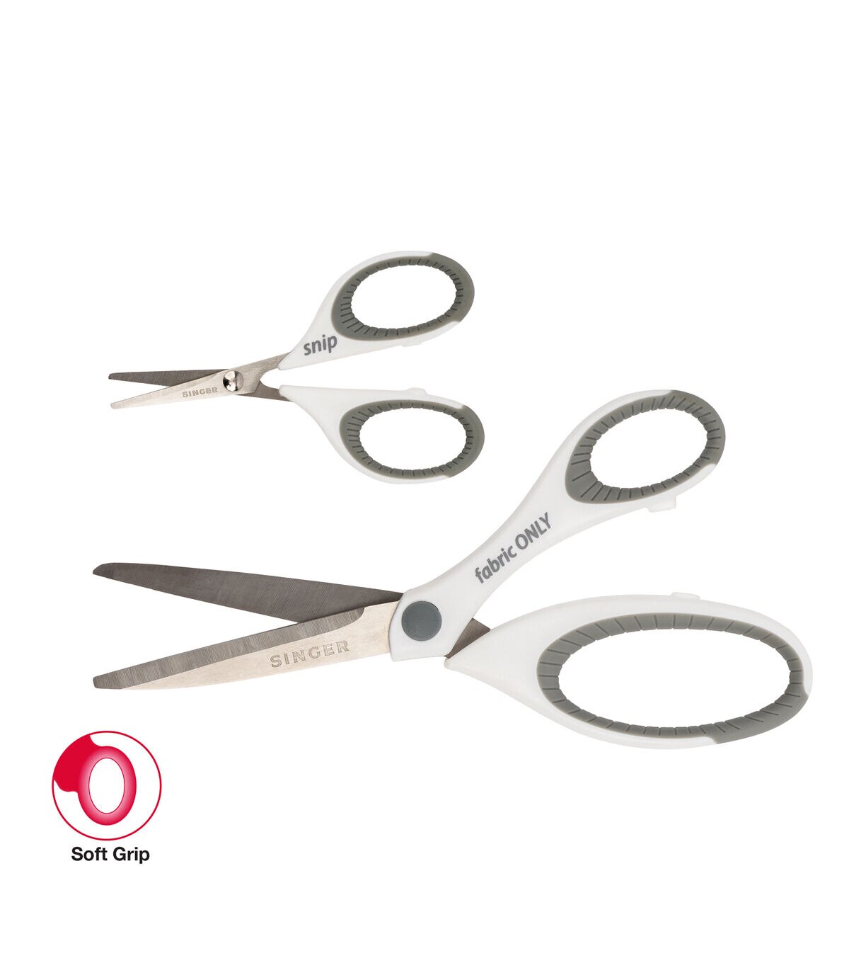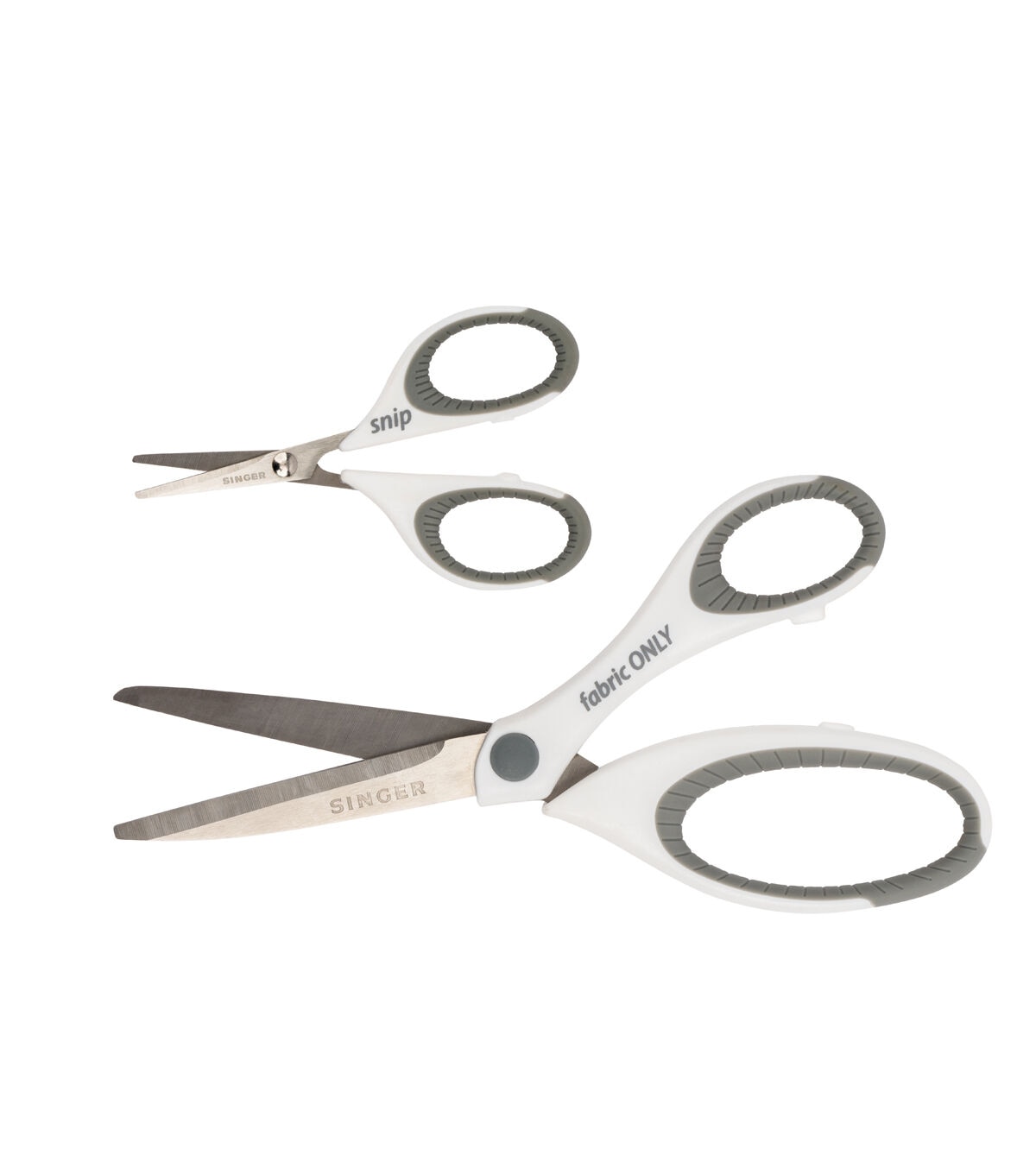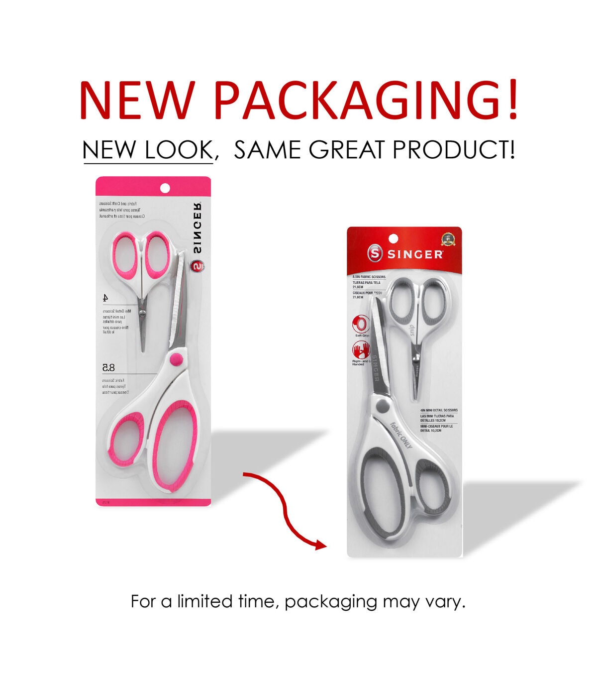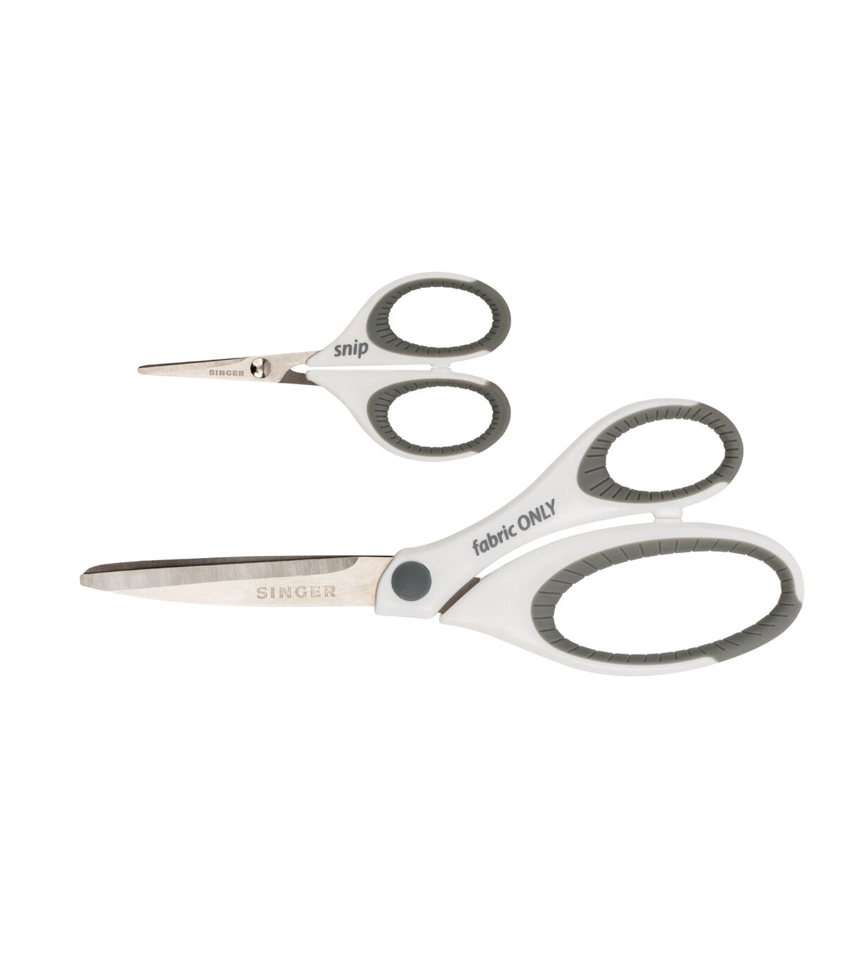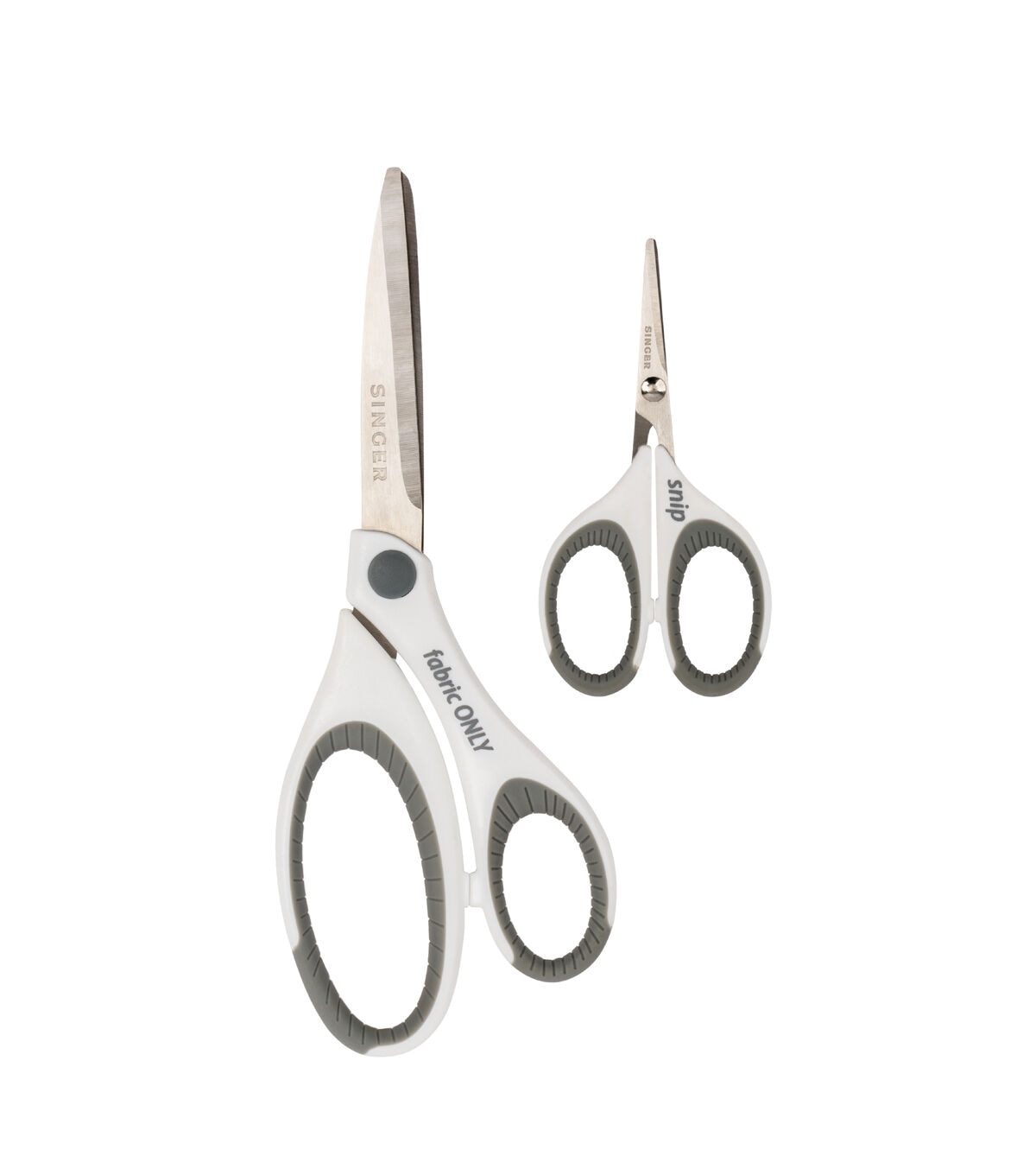 - 8.5” Fabric Scissors are dressmaker’s shears designed for easily cutting through multiple layers of fabrics and 4” Mini Craft Scissors are designed for precise cutting of thread, paper, and crafts