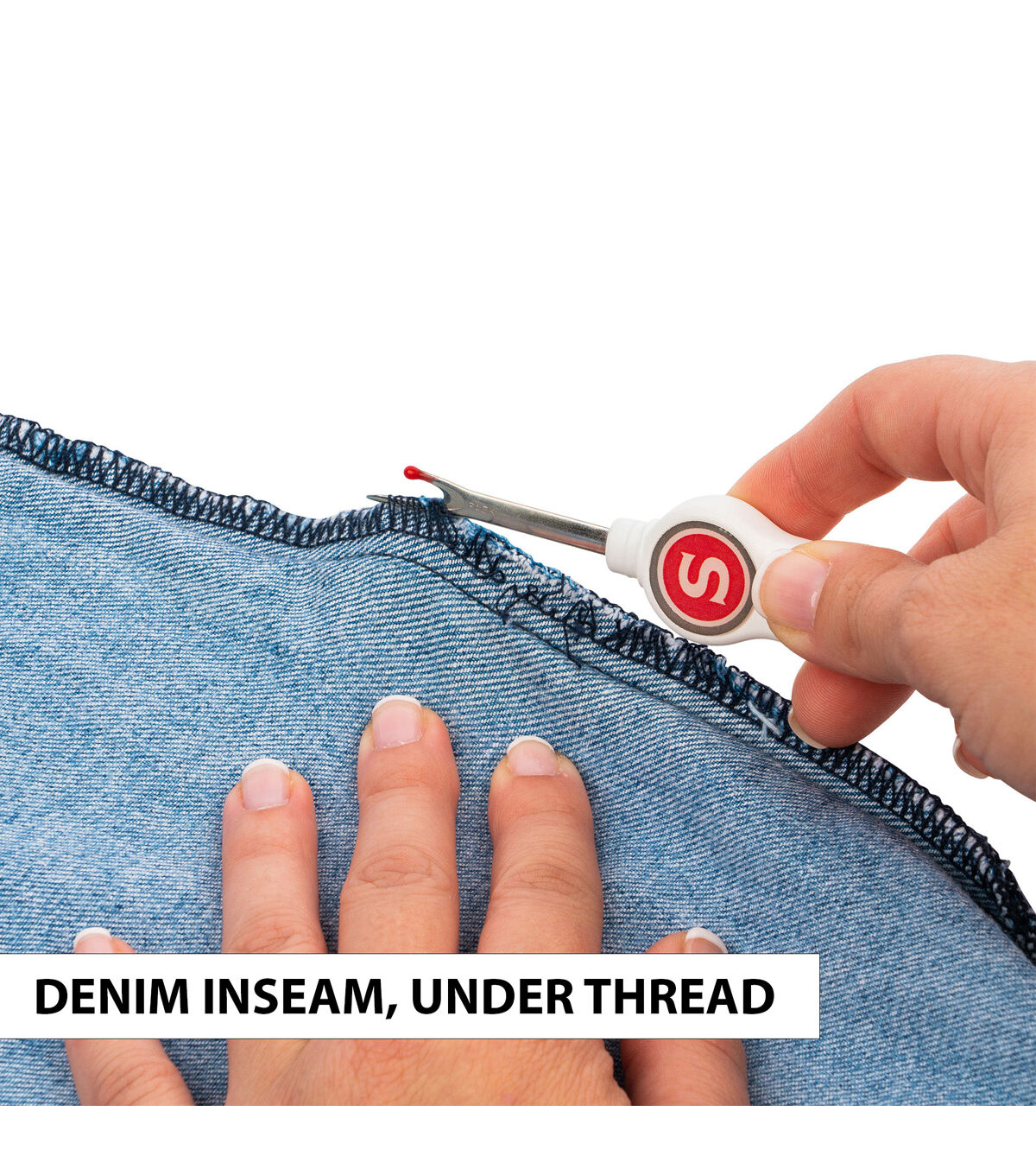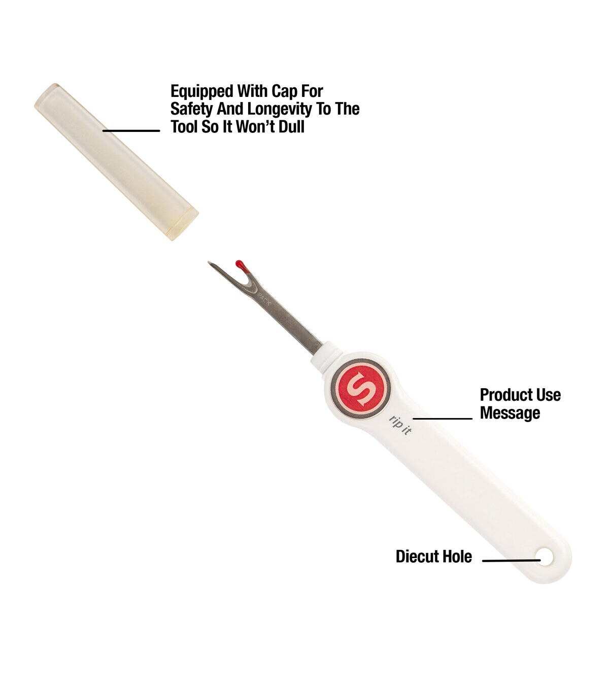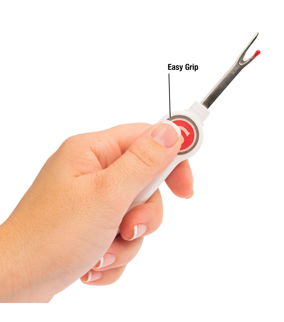 - Comfort Grip Seam Ripper easily picks threads, opens seams and buttonholes, and removes stitches, buttons, and labels without damaging fabrics