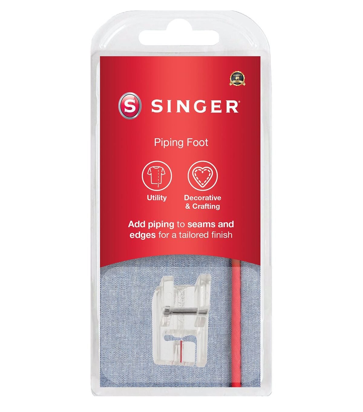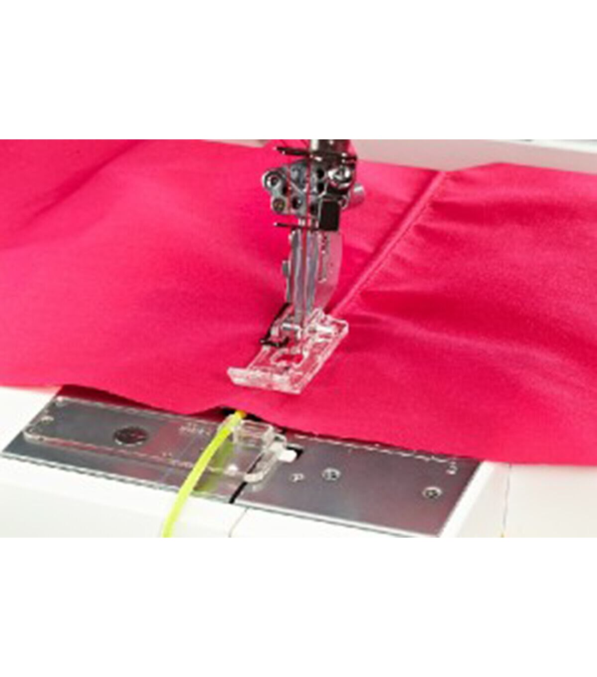 The Piping Foot is used to insert packaged piping into seams and edges for a tailored finish. For specialty piping, cord can be covered with fabric. The clear view allows you to see your stitching and piping placement and to see the first row of stitching and adjust your needle position appropriately to stitch next to the original row.