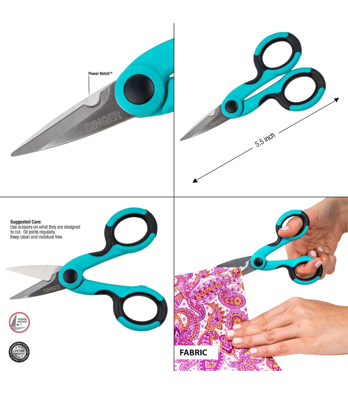 These small and precise 5 ½-inch detail scissors are made for professionals and sewing enthusiasts alike. The rubberized comfort grip handles allow the user to craft without pinching or rubbing. The scissor blades have been individually inspected and hand-tested to ensure quality. Each pair comes with a lifetime guarantee.