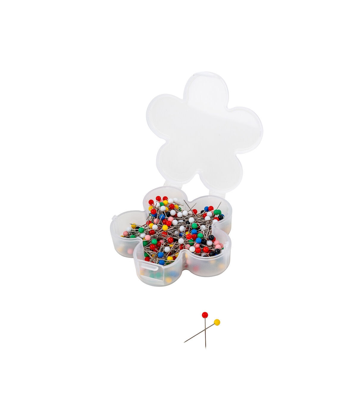 Make quilting easy with the Singer Proseries Ball Head Straight Pins in Flower Case. This pack includes a flower-shaped, transparent case that includes 300 nickel-plated straight steel pins in size 17. These super-strong and durable pins are perfect for crafting and quilting. The plastic case comes with a snap hinge closure and is easy to store and transport.
