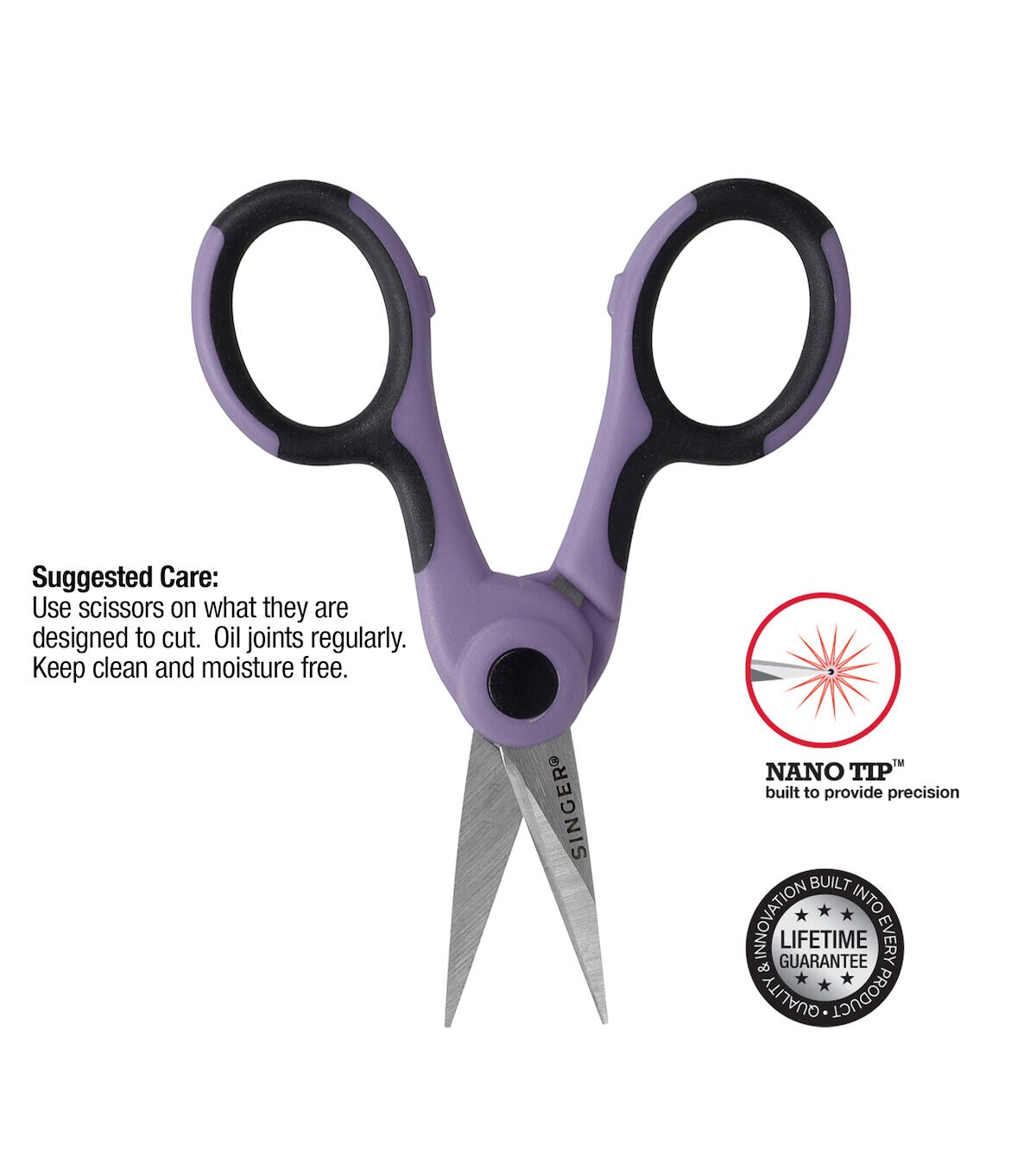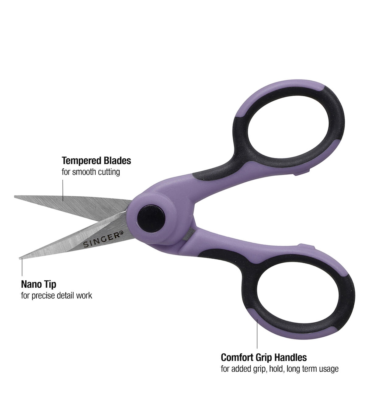 - 4.5'' ProSeries Detail Scissors are small sharp scissors with a NANO tip designed for embroidery, quilting, applique, notching patterns and other precision cutting tasks ·Scissors feature lilac and black comfort grip handles and can be used as left-handed scissors and right-handed scissors